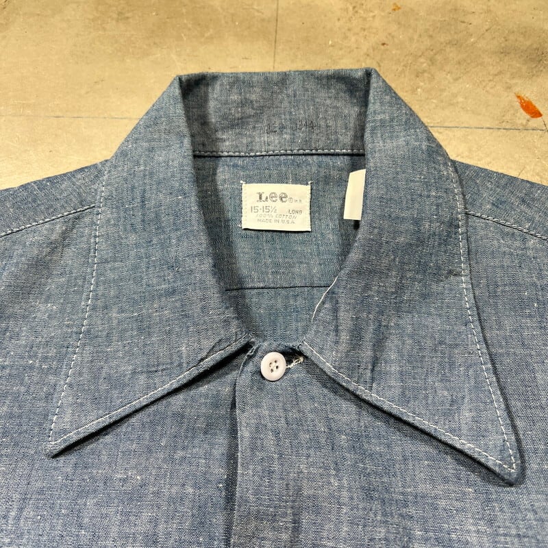~70's Lee リー 120-0944 シャンブレーシャツ ワークシャツ 白タグ グッドコンディション コットン100% MEDIUM LONG USA製 希少 ヴィンテージ BA-1994 RM2413H