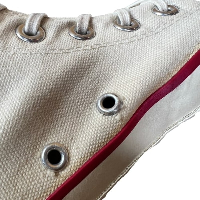 80's CONVERSE コンバース ALL STAR HI オールスターハイ キャンバススニーカー 生成り オフホワイト 青文字青枠 サイドステッチ 当て布 US11 USA製 希少 ヴィンテージ BA-2000 RM2419H