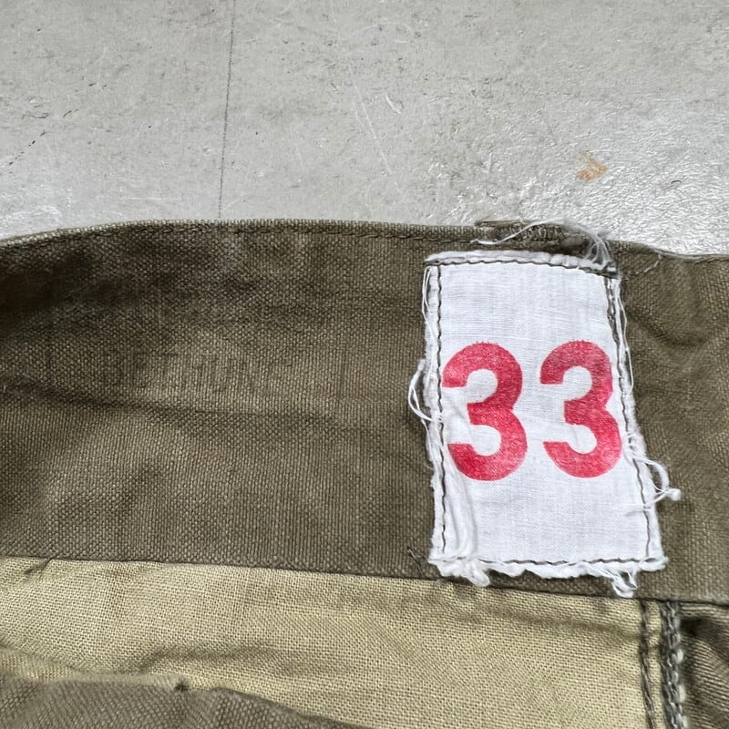 40's 50's フランス軍 M47 フィールドパンツ 前期型 オリーブ キャンバス 平織り レア カーゴパンツ サイズ33 W34位 フレンチアーミー ユーロミリタリー 希少 ヴィンテージ BA-2004 RM2423H