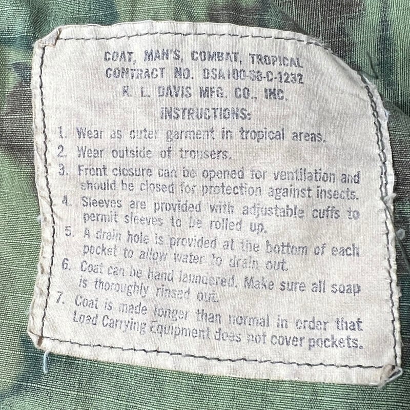 60's U.S.ARMY ジャングルファティーグジャケット ERDL グリーンリーフカモ 4th DSA100-68-C-1232 R.L.DAVIS MFG CO NAM戦 リップストップ SMALL SHORT 希少 ヴィンテージ BA-2005 RM2424H