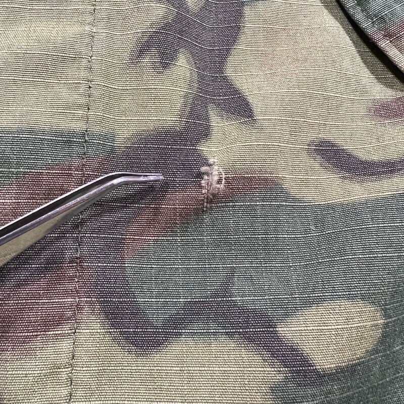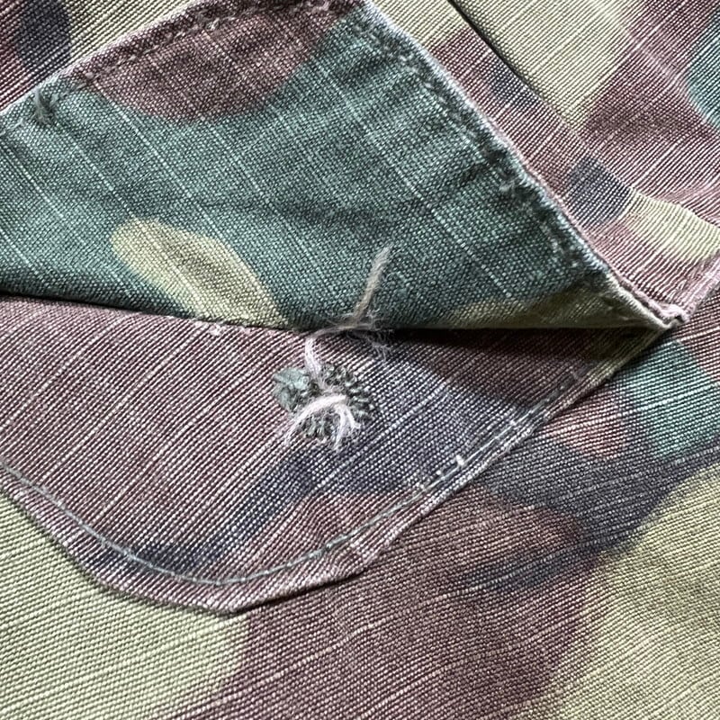 60年代のUSMCジャングルファティーグジャケットです。コントラクターはR.L.DAVIS MFG CO、ミルスペックはDSA100-68-C-1232。ERDLグリーンリーフとはウッドランド迷彩の元となった事で知られ、グリーン、ブラウン、ライム、ブラックで形成され1967年に採用されたカモフラージュパターンです。ご紹介するこちらはリップストップ地の4thタイプです。胸ポケット上にU.S.ARMYとネームのパッチが縫い付けられています。全体的に色褪せや、薄汚れがあり、フロントに小さなダメージもございますが、状態は良好かと思います。ボタンもすべてオリジナルで揃っています。サイズはSMALL SHORT。ジャングルファティーグに限らず、ミリタリーアイテムの中でも比較的球数の少ない言われるSHORTモデルですので、お探しだった方は是非いかがでしょうか。