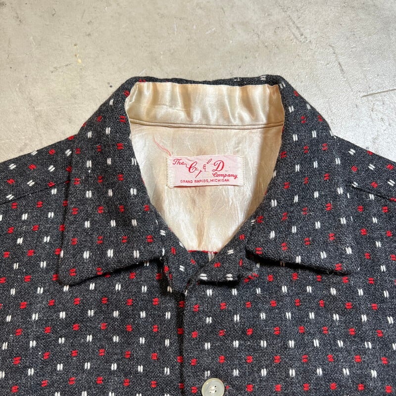 50's The C&D Company ウールオープンカラーシャツ 刺し子 グレー×レッド×ホワイト グッドコンディション ロカビリー M~L 希少 ヴィンテージ BA-2013 RM2432H