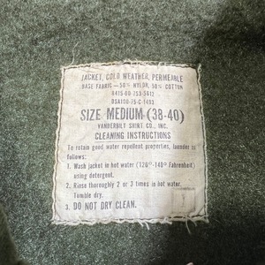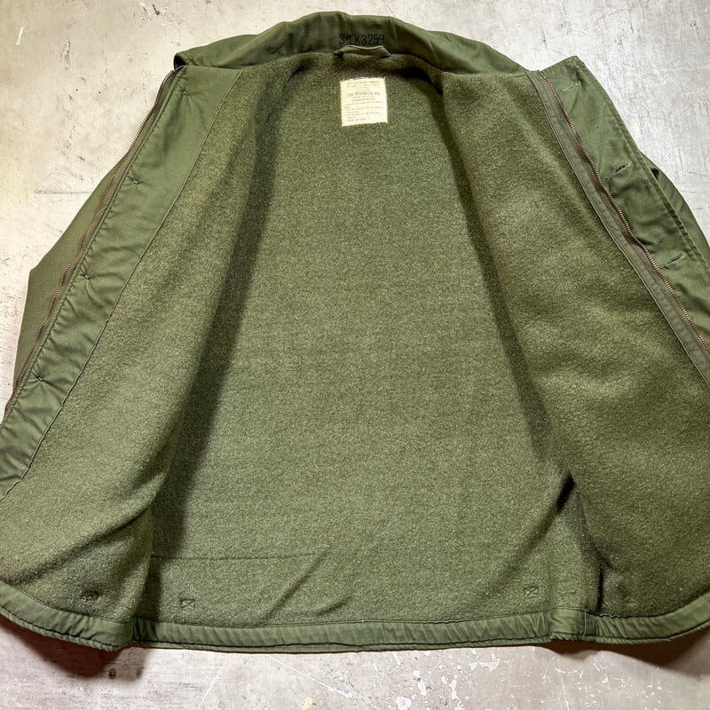 70年代のU.S.NAVY A-2デッキジャケットです。 DLA100-75-C-1493、VANDERBILT SHIRT社製。N-1デッキジャケットの後継として60年代初頭に導入されたアイテムで、A-2の初期型は胸のポケットのフラップの形状が三角となります。こちらは75年コントラクトの後期モデルとなります。ジッパーはGENERAL社のベル型が採用されています。ボタンの欠損も無く、使用感少ないミントコンディションです。ダマになりやすいライニングもとても綺麗です。首元にスタンプが入り、前立て下部にマジックでSILKと書かれています。A-2の中では需要の高いMEDIUMサイズです。