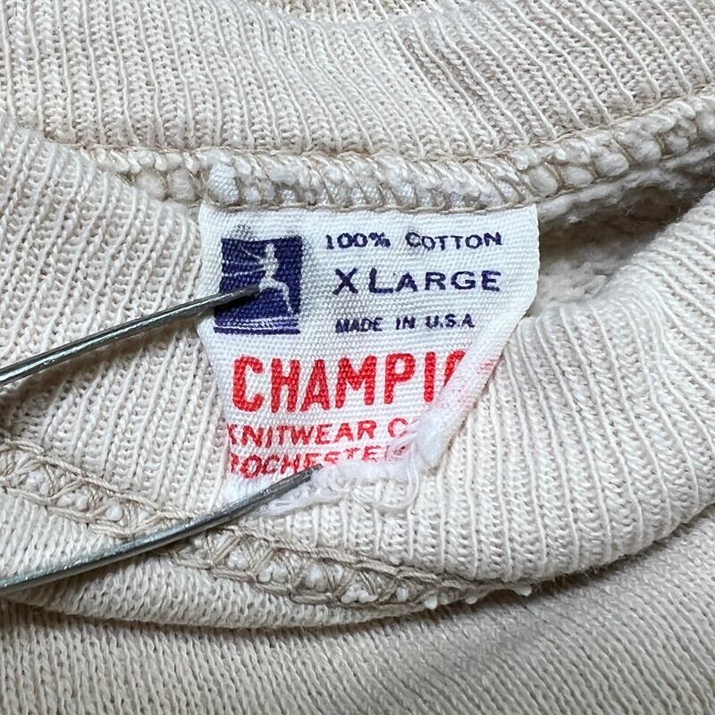 60's CHAMPION チャンピオン ラグランカレッジスウェット ランタグ STATE UNIVERSITY OF NEW YORK Canton Tech ニューヨーク州立大学カントン校 ライトベージュ レアカラー ステッチエラー? USA製 XL 希少 ヴィンテージ BA-2027 RM2446H