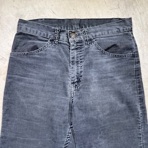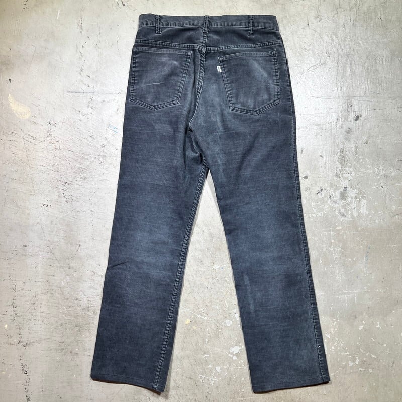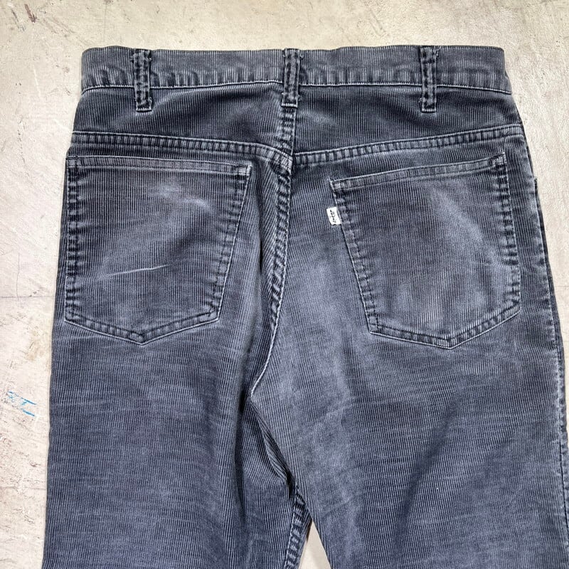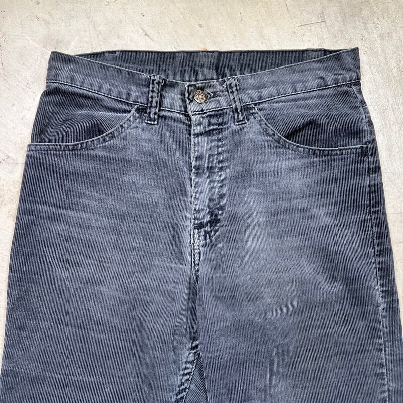 80年代頃のLevi's519-1558ブラックコーデュロイパンツです。519コーデュロイパンツの中でも特に人気の高いブラックです。綺麗なストレートシルエットでお探しの方も多いかと思います。品番はブラックですが、グレーやチャコールの様に雰囲気良く褪色しています。右ポケットのスレーキに若干破れがございます。その他擦れ等の使用感はございますが、股やお尻部分の生地はしっかりとしており、コンディションは良好かと思います。ウエストはW30インチですので、男女共に着用しやすいと思います。フェードによりうっすらとヒゲが入り、穿き込まれた表情がかっこいい1本です。これからの季節は1本あると幅広く使えますので、お探しだった方、前回買い逃した方は是非この機会にいかがでしょうか。
