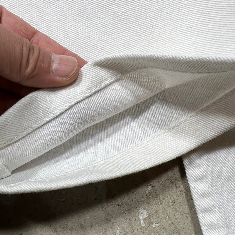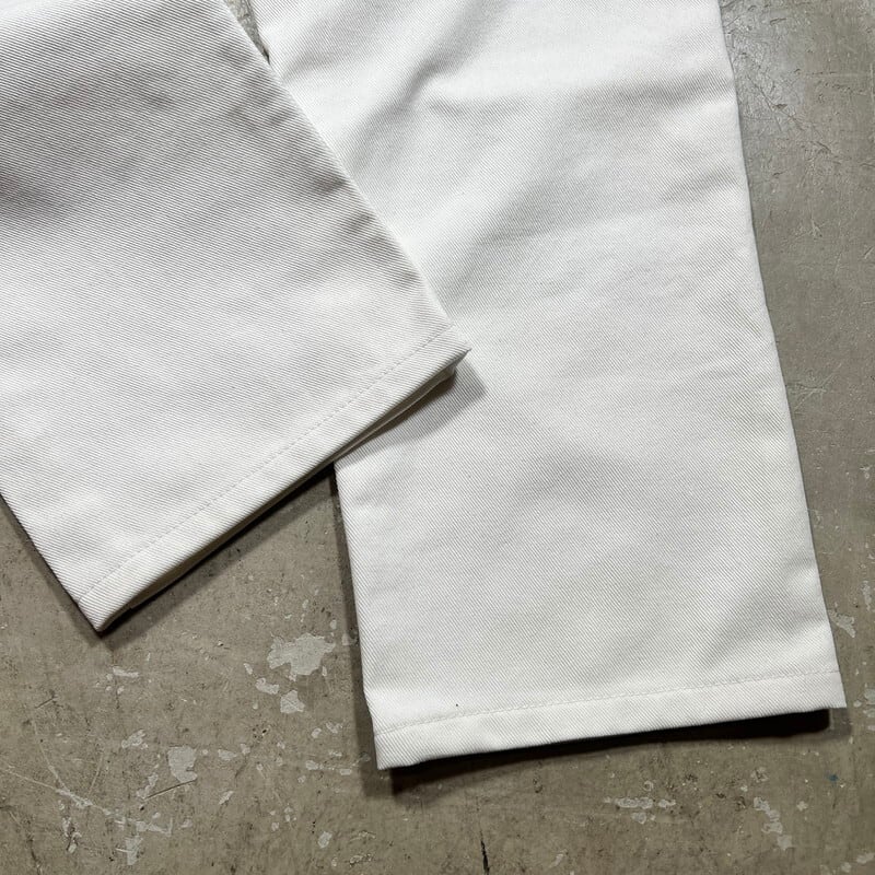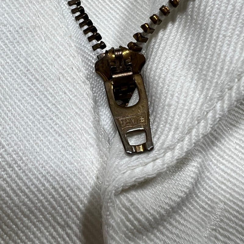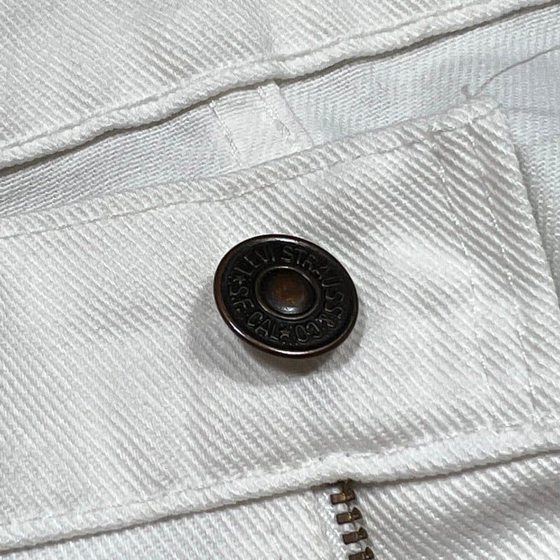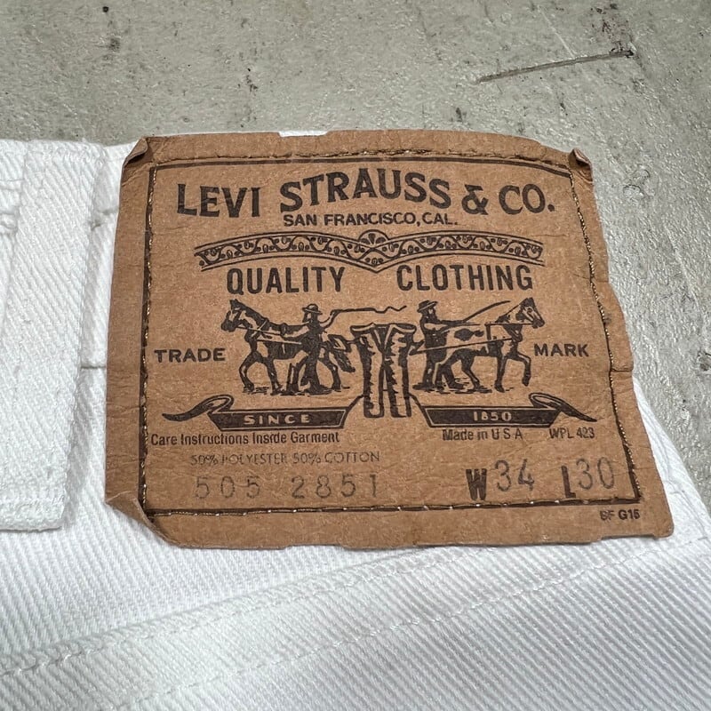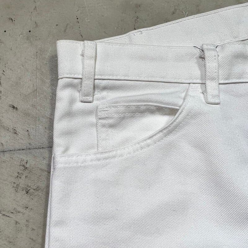 80年代頃のLevi's 505-2851ホワイトツイルパンツです。こちらのモデルはコットン50%ポリエステル50%の混紡のホワイトツイル地です。トップボタン523刻印、社名入りジッパー、スモールe白タブ。内タグの印字は擦れている為判読不可。かなり久しぶりの入荷となるこちらは所謂カツラギと呼ばれます。多少の使用感はございますが、汚れも少なくコンディションは良好な1本です。レングスが少し丈詰めされておりやや短めではありますが、現代のアイビーファッションに取り入れると使い易いのではないでしょうか。素足にローファーや、カラーソックスに短靴等をあわせても良いと思います。ホワイトのパンツをお持ちで無い方は是非この機会にいかがでしょうか、デニムシャツやミリタリーとも相性が良いので1本あると重宝するアイテムです。ウエストはW34インチとゴールデンサイズです。