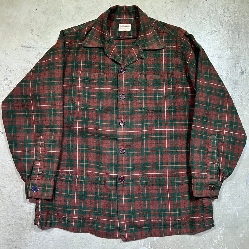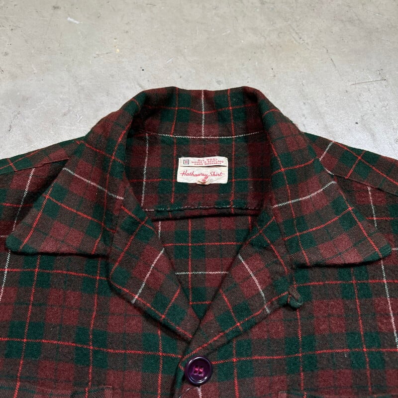 50's~ Hathaway Shirt ウールシャツジャケット オープンカラー 開襟 ブラウンチェック C. F. Hathaway Company カバーオール Lサイズ 希少 ヴィンテージ BA-2072 RM2491H