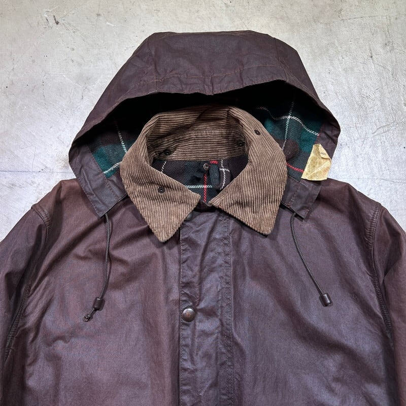 80's Barbour NORTHUMBRIA バブアー ノーザンブリア 2クレスト オイルドジャケット フード付き ブラウン オリジナル リプルーフ Mackinnon Hunting 42 イングランド製 希少 ヴィンテージ BA-2077 RM2496H