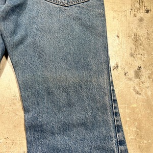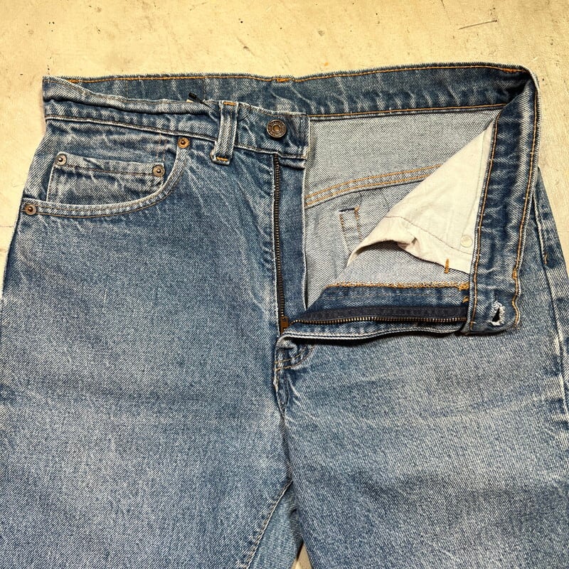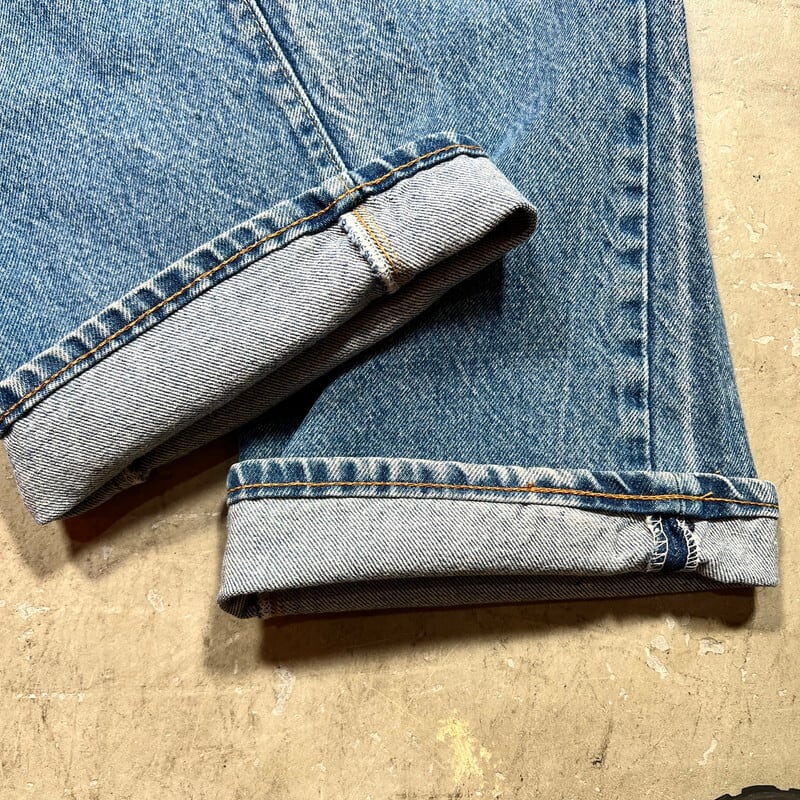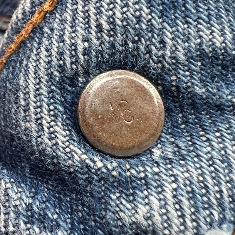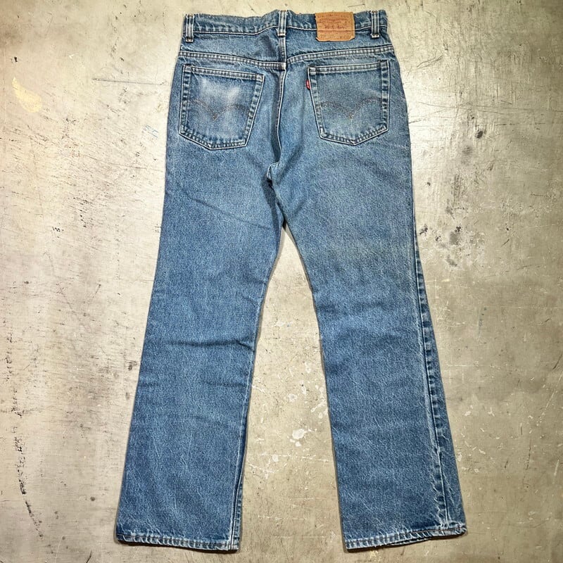80年代のLevi's 517 ブーツカットデニムです。1980年製造の66後期モデルです。トップ裏刻印16、42TALON、ウォッチポケット裏シングル、バックポケット裏チェーンステッチ、赤タブスモールe。ご紹介するこちらは、16番工場で1980年に製造された個体となります。刻印16が入るデニムの紙タグは通常の左側では無く右側に縫い付けられています。長らく謎に包まれていた16番工場はミシシッピ州にある別会社がリーバイス社から委託で製造していた事が判明したようですね。全体的に粗い色落ちが見られ、色残りは3割程度です。生地はかなりしっかりしている印象です。背面に畳みヤケがあり、裾に若干の擦れはございまうsが、特筆するダメージはございません。ウエストは表記通りW33インチです。色は濃く無いですがサイズやコンディションはかなり良い個体だと思いますので、ブーツカットのシルエットがお好きな方は是非この機会にいかがでしょうか。