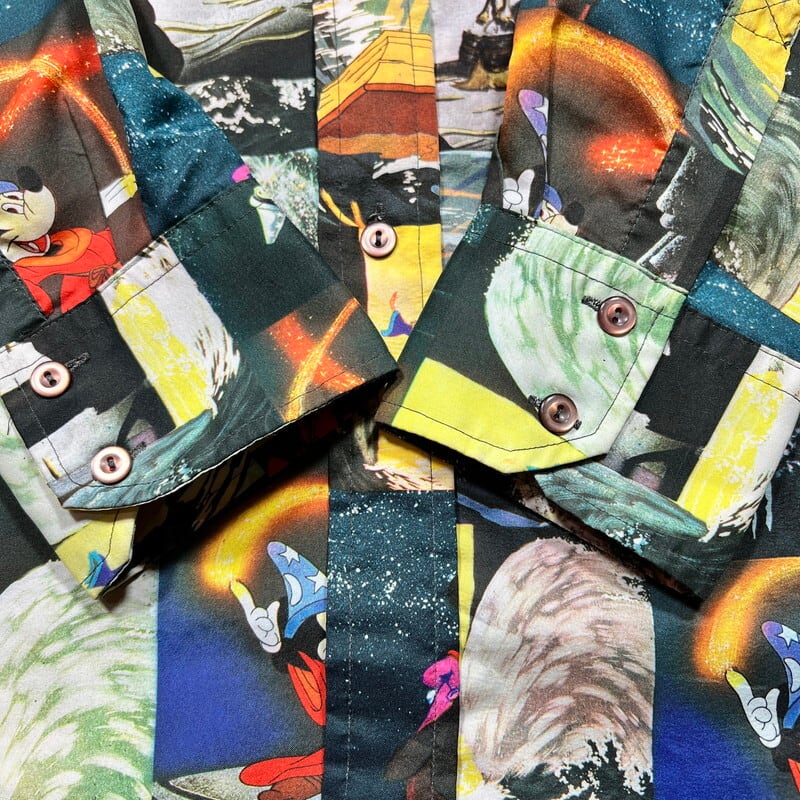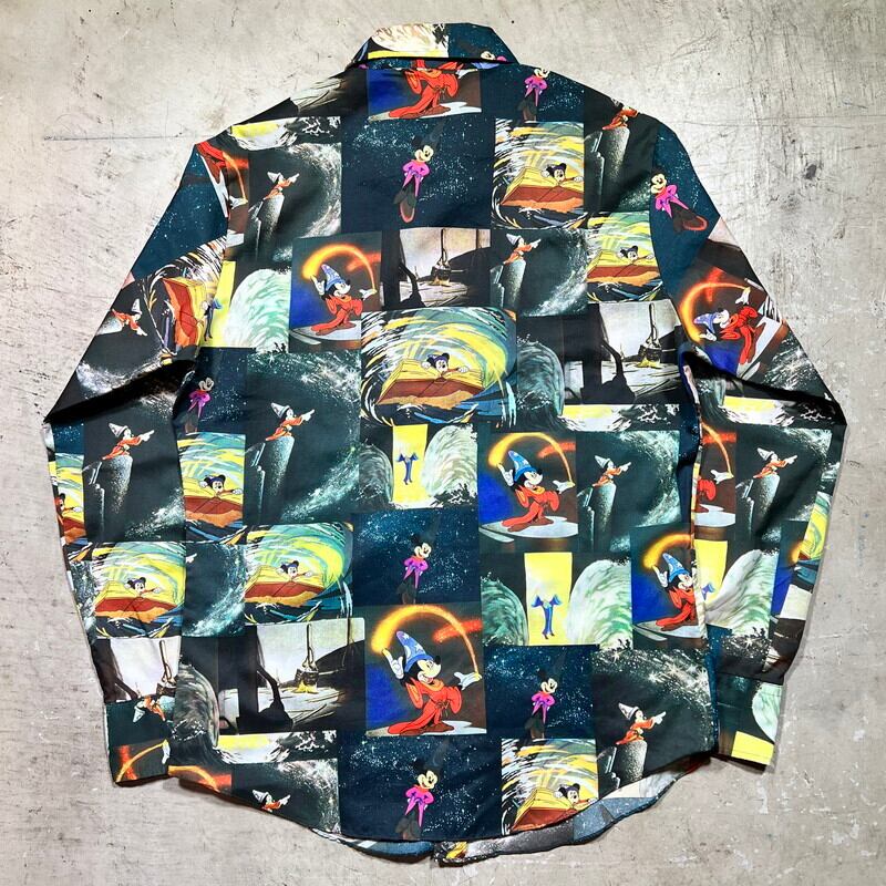 70's KENNINGTON × DISENEY ミッキーマウス FANTASIA 魔法使いの弟子 総柄 ポリエステルシャツ ポリシャツ ディスコシャツ ミントコンディション M~L相当 希少 ヴィンテージ BA-2106 RM2525H