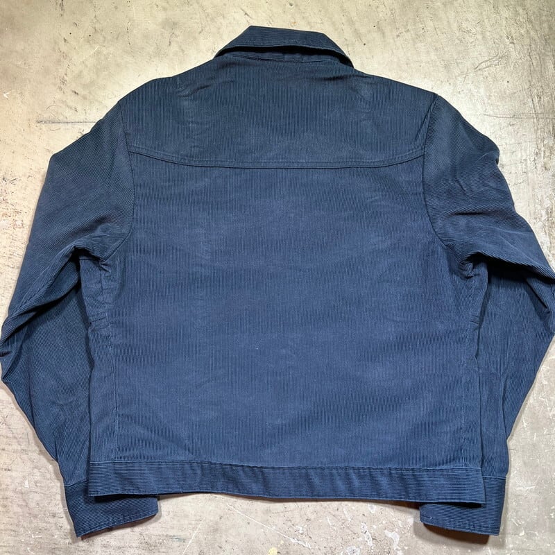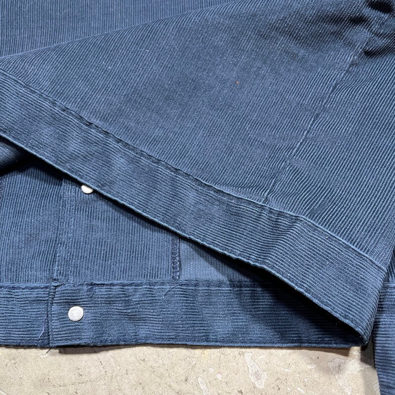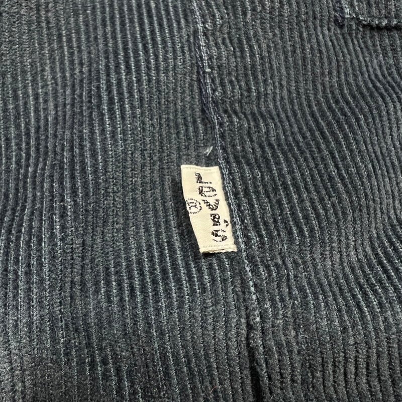 70年代のLevi's 70692 コーデュロイジャケットです。リーバイスのコーデュロイというと70505が一般的ですが、ご紹介するこちらのモデルはポケットの切り替えしが特徴的なアイテムです。当初は様々なブランドもこのようにデザイン性の高いアイテムを製造していたので、時代性も感じる事が出来るのではないでしょうか。胸元には白タブが付き、ボタン裏は恐らく無刻印です。カラーはネイビーが程よくフェードしています。サイズ表記がありませんが、比較的大き目なサイズ感で、42~44相当はあるのかなという印象です。今の時期ですとインナーとして使えますし、春先にはトップスとしても合わせていただけます。人とあまり被りたくないといった人にもお勧めです。