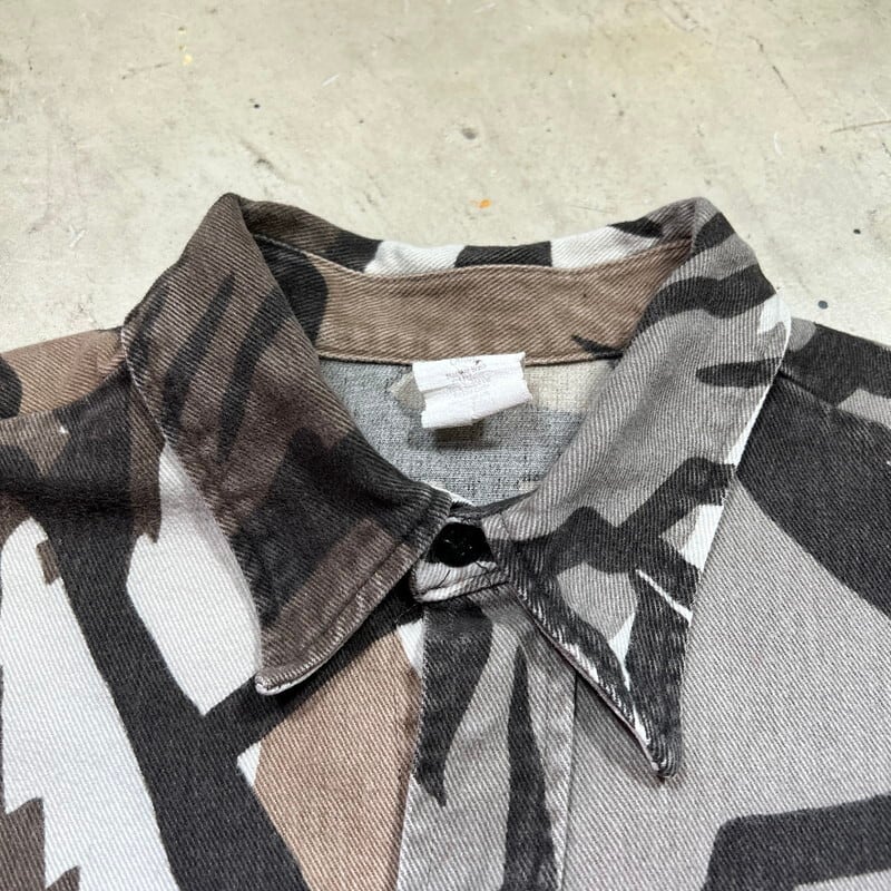 80's 90's PREDATOR CAMOUFLAGE プレデター カモフラージュシャツ 迷彩 FALL GRAY グレー コットン アウトドア ハンティング LARGE USA製 希少 ヴィンテージ BA-2134 RM2553H