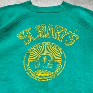 50~60's Unknown カレッジスウェット ST MARY'S HIGH SCHOOL ラグランスリーブ フロッキー グリーン グッドコンディション ビッグサイズ L~XL相当 希少 ヴィンテージ BA-2136 RM2555H