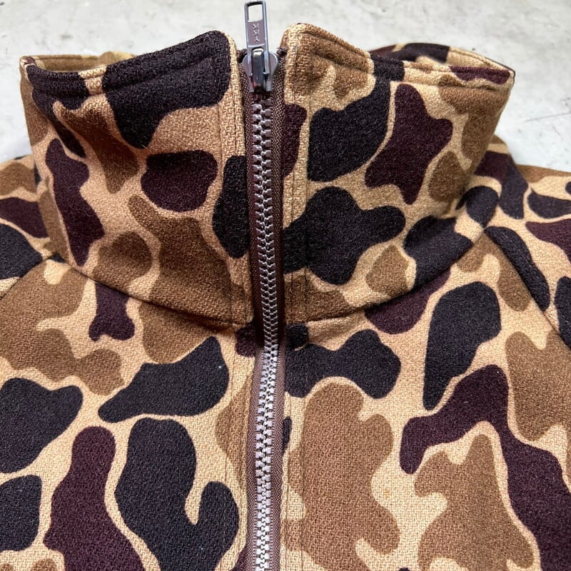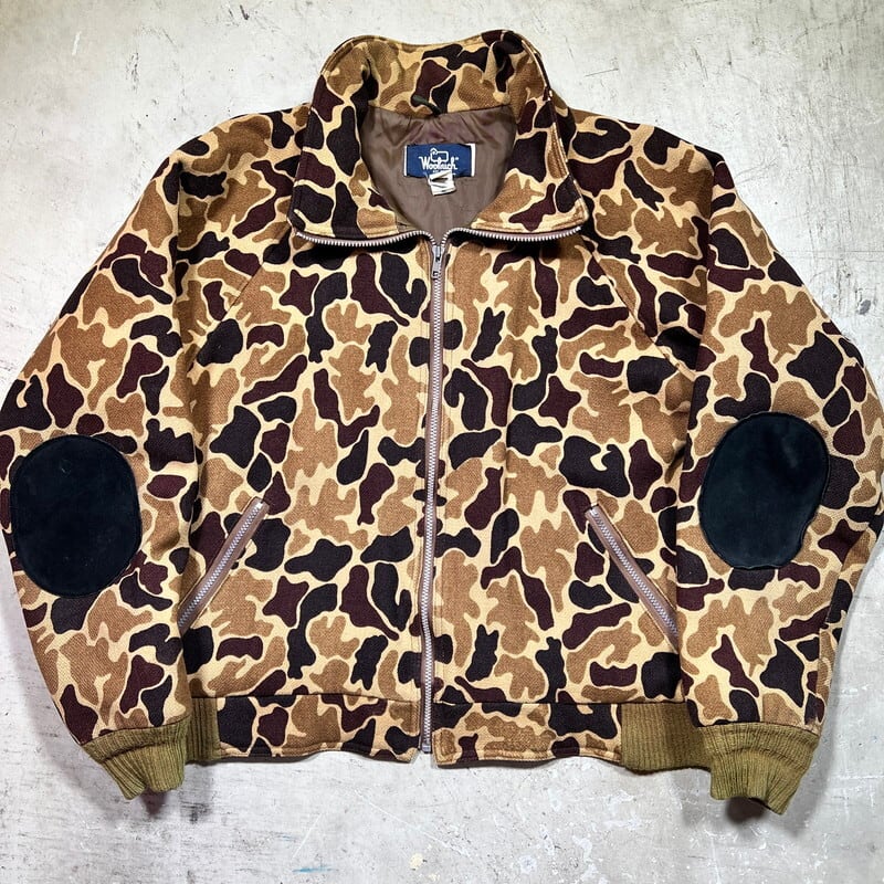 80's Woolrich ウールリッチ ダックハンターカモジップアップウールジャケット L.L.BEAN OEM XL USA製 中綿 エルボーパッチ ジッパー不良 希少 ヴィンテージ BA-2139 RM2558H
