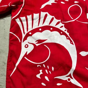 50's LINN'S HAWAIIAN SPORTWEAR コットンハワイアンシャツ TROPICAL SAILFISH バショウカジキ柄 ココナッツボタン 開襟 オープンカラー グッドコンディション L相当 希少 ヴィンテージ BA-2171 RM2590H
