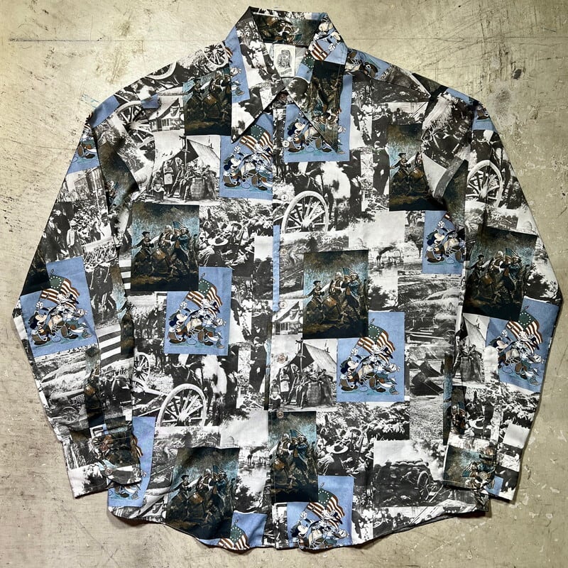 70's KENNINGTON × DISNEY ミッキーマウス ケニントン ポリエステルシャツ ポリシャツ ディスコシャツ アメリカ独立記念 西部開拓 Yankee Doodle L相当 希少 ヴィンテージ BA-2185 RM2604H
