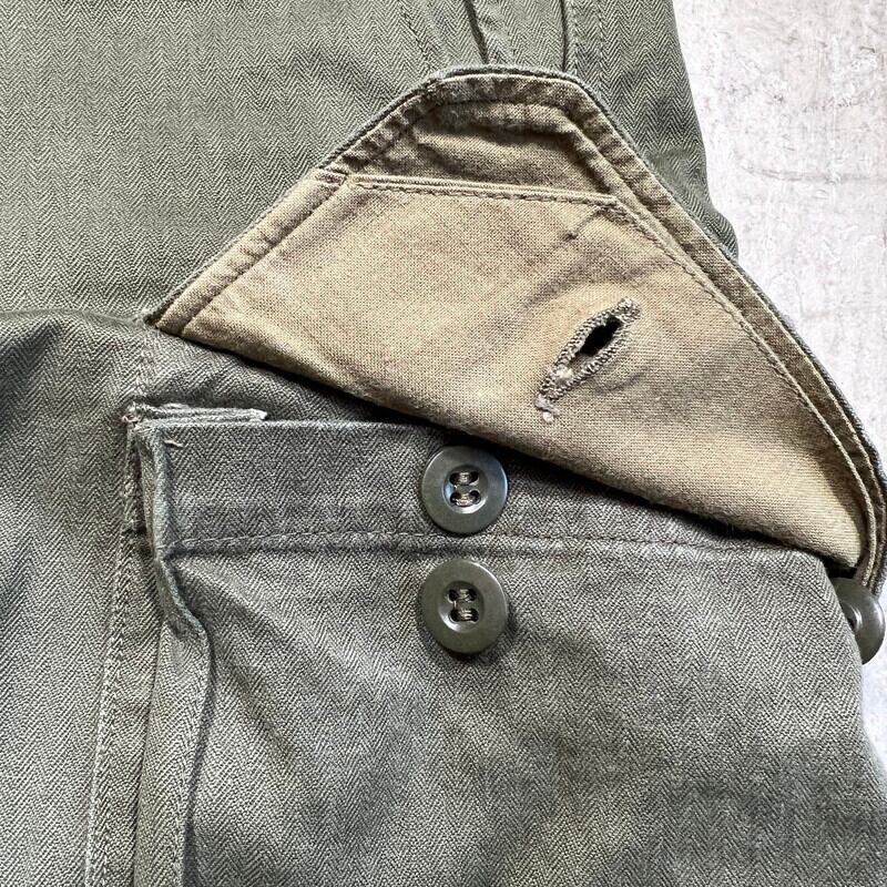 50's~60's フランス軍 M47 カーゴパンツ 後期型 ヘリンボーン HBT オリーブ ステンシル サイズ21 実寸W31インチ フレンチアーミー ユーロミリタリー 希少 ヴィンテージ BA-2201 RM2620H
