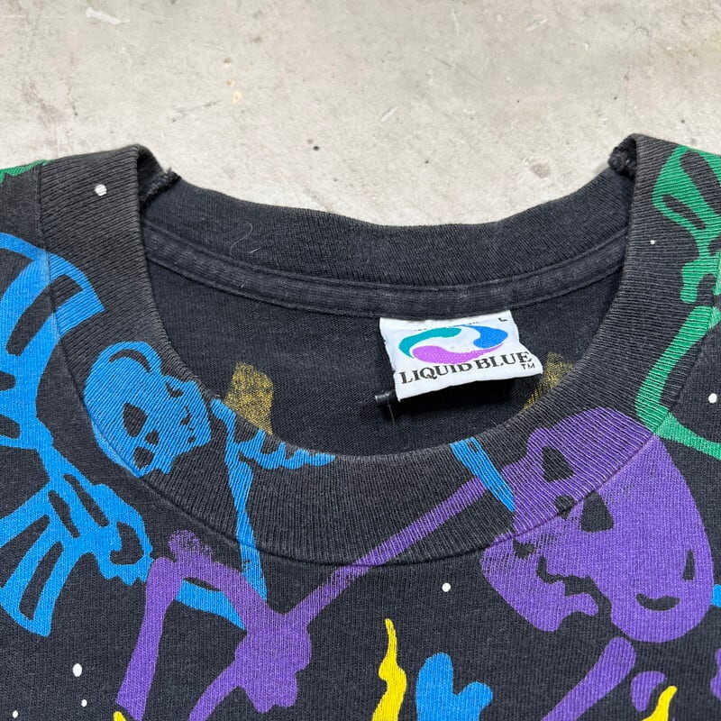 90's GRATEFUL DEAD グレイトフルデッド DEAD SPACE DANCING SKELTON オールオーバープリントTee 1992コピーライト LIQUID BLUE Lサイズ USA製 希少 ヴィンテージ BA-2217 RM2636H