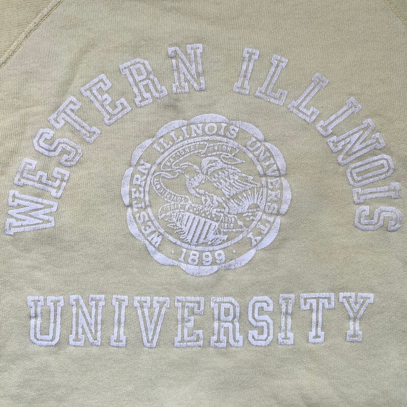 ~60's Unknown WESTERN ILLINOIS UNIVERSITY ラグランカレッジスウェット 半袖 フロッキー レモンイエロー コットン S相当 希少 ヴィンテージ BA-2224 RM2643H