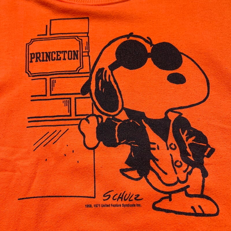 70's~80's SNOOPY PRINCETON UNIVERSITY スヌーピー プリンストン大学 カレッジプリントスウェット 半袖 JOE COOL オレンジ ブラック M~L相当 希少 ヴィンテージ BA-2232 RM2651H