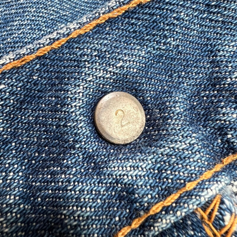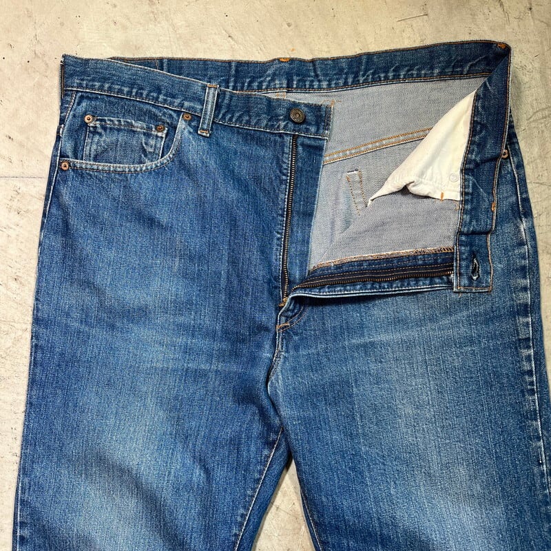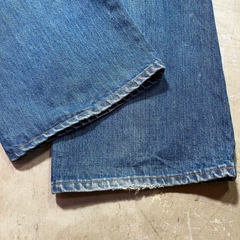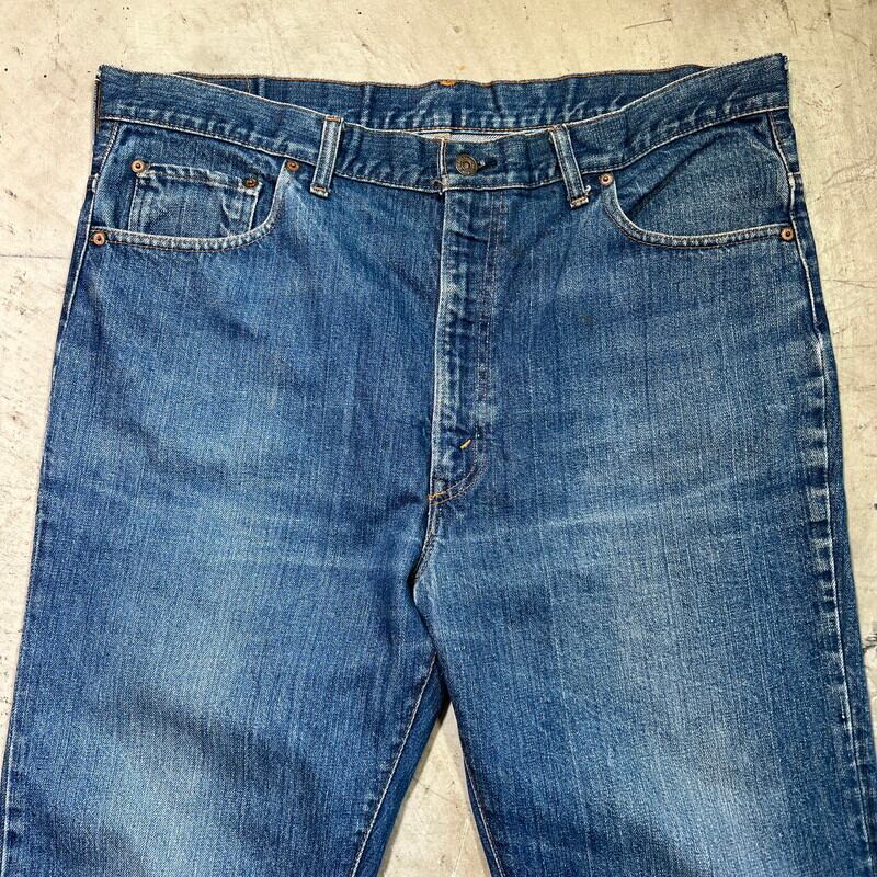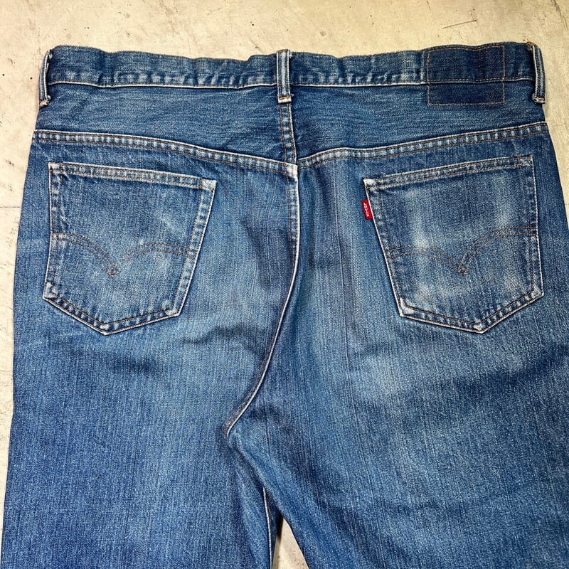 70年代のLevi's 517ブーツカットデニムです。1976年製造の66前期モデルです。トップボタン裏刻印2、42TALON、バックポケット裏シングル、赤タブスモールe。色残りは5割程で、うっすらとヒゲが入り縦落ちも確認できます。517はブーツカットモデルですが、こちらの個体は裾の広がりは少なく、ほぼストレートシルエットです。フロントに薄汚れや色抜け箇所があり、裾に若干ダメージがございます。リペアは無く比較的コンディションは良いと思います。表記通りウエストはW40インチと大きいサイズです。色味もまだ残っていますので、これからのエイジングも楽しめると思います。大きいサイズですので、ウエストをぎゅっと絞ってゆったりと穿いても良いかと思います。ゆったり目なサイズでお探しだった方は是非いかがでしょうか。