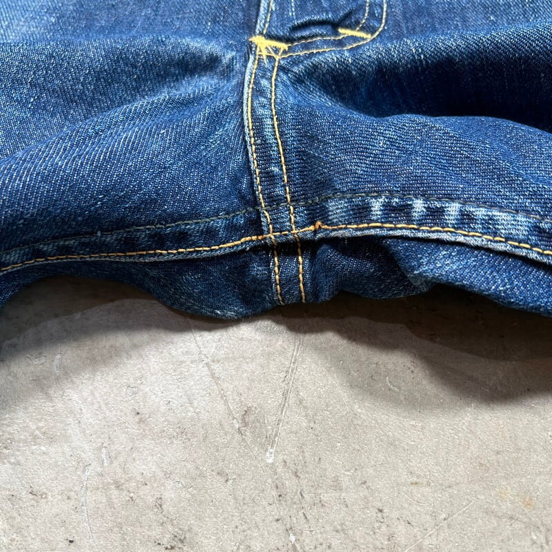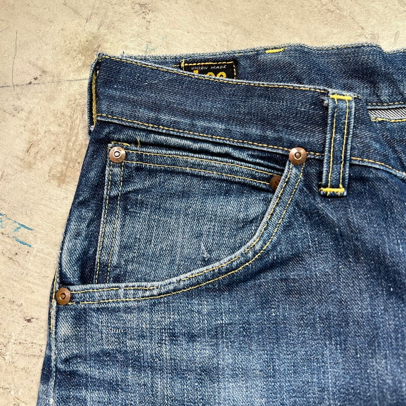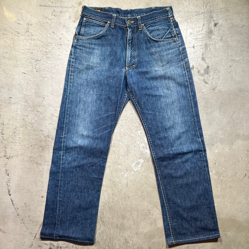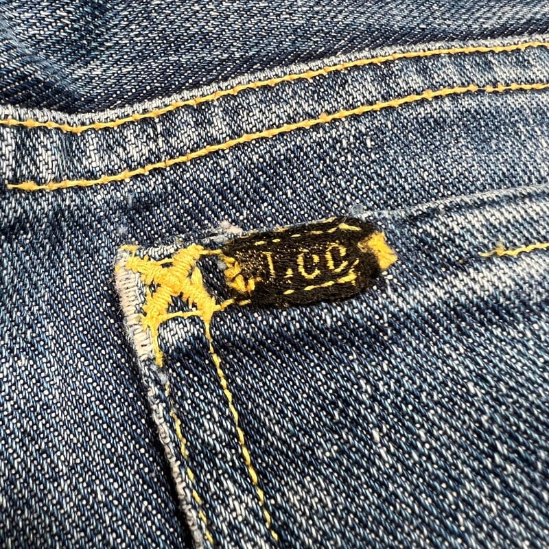 50年代後半頃のLee 101Z デニムパンツです。センター黒タグからサイドに切り替わった直後の黒タグです。フロントボタンはLee RIDERS、GRIPPERのカムロックジッパーが採用されています。バックポケット内側に当て布とユニオンチケットがございます。ピスネームには®表記のみ。色残りは5~6割ですが濃淡を感じるコントラストです。アウトシームは片耳仕様で、チェーンステッチで裾上げされています。うっすらとヒゲが入り、腿の縦落ち感も雰囲気が良い古来です。左サイドに一部小さなダメージがありますが、その他はリペア等無いグッドコンディションだと言えます。ウエストは実寸W32インチとゴールデンサイズです。古い年代のLeeのデニムをpオア菓子だった方は是非この機会にいかがでしょうか。サイズも良く、男女共に穿きやすいサイズでオススメです。