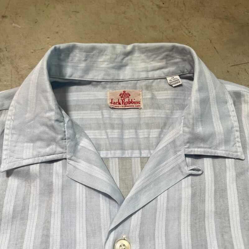 60's Jack Robbins ジャックロビンズ シースルーストライプオープンカラーシャツ ライトブルー 開襟シャツ Mサイズ USA製 希少 ヴィンテージ BA-2241 RM2660H