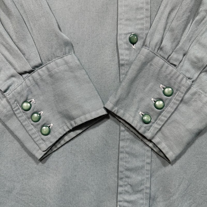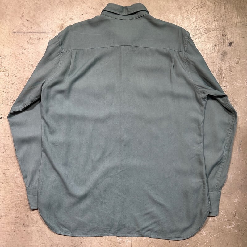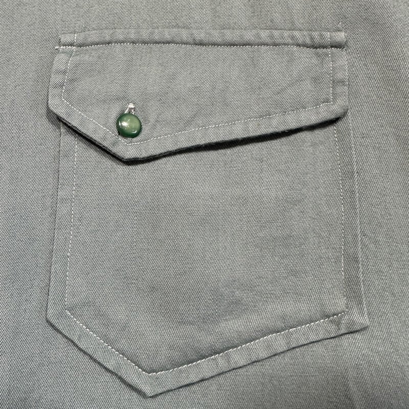 40's McGregor FRONTIERS マクレガーフロンティア レーヨンギャバジンシャツ ダイアゴナルポケット ベークライト グレーグリーン 筆記体タグ マチ付き L相当 USA製 希少 ヴィンテージ BA-2247 RM2666H