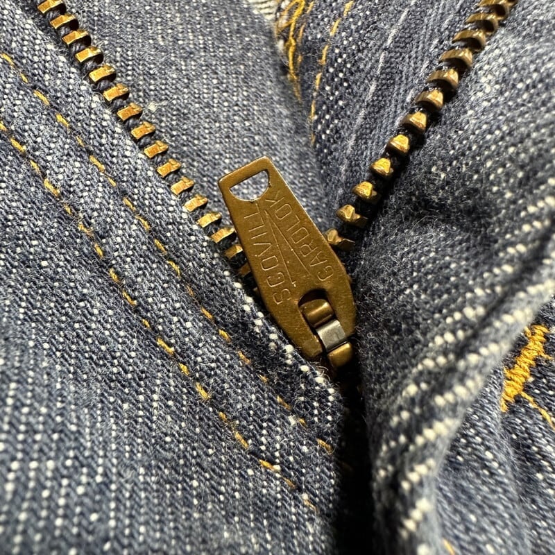 70年代頃のROEBUCKS5Pデニムパンツです。アメリカ3大ストアで知られるSearsが展開していたプライベートブランドです。スタンダードな5ポケットで、フロントはSCOVILLのGARDLOKセミオートマチックジッパーが使用されています。サイドは巻き縫い仕様でセルヴィッジはございません。インディゴに比べややグレーがかった色味なのでバットダイかと思われます。ウエストにはプラパッチが付き、バックポケットにはピスネームも縫い付けられています。裾にオイル地味のような汚れがありますが、その他は比較的コンディションもよく目立つダメージはございません。ウエストは実寸でW34インチと良いサイズ感です。レングスはオリジナルだと思われます。ヴィンテージとしては年代は浅めですが、。この辺りのストア物も以前に比べると見かける機会も減ってきていますので、お探しだった方は是非この機会にいかがでしょうか。