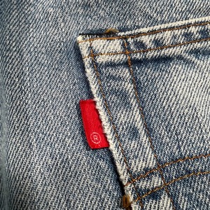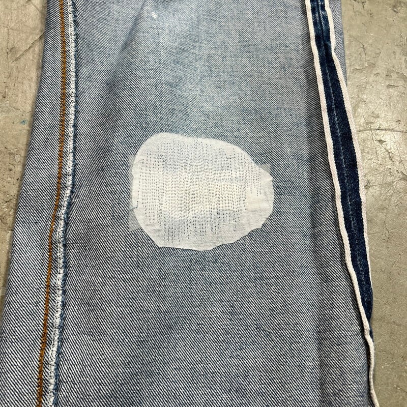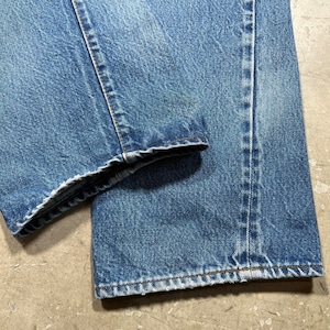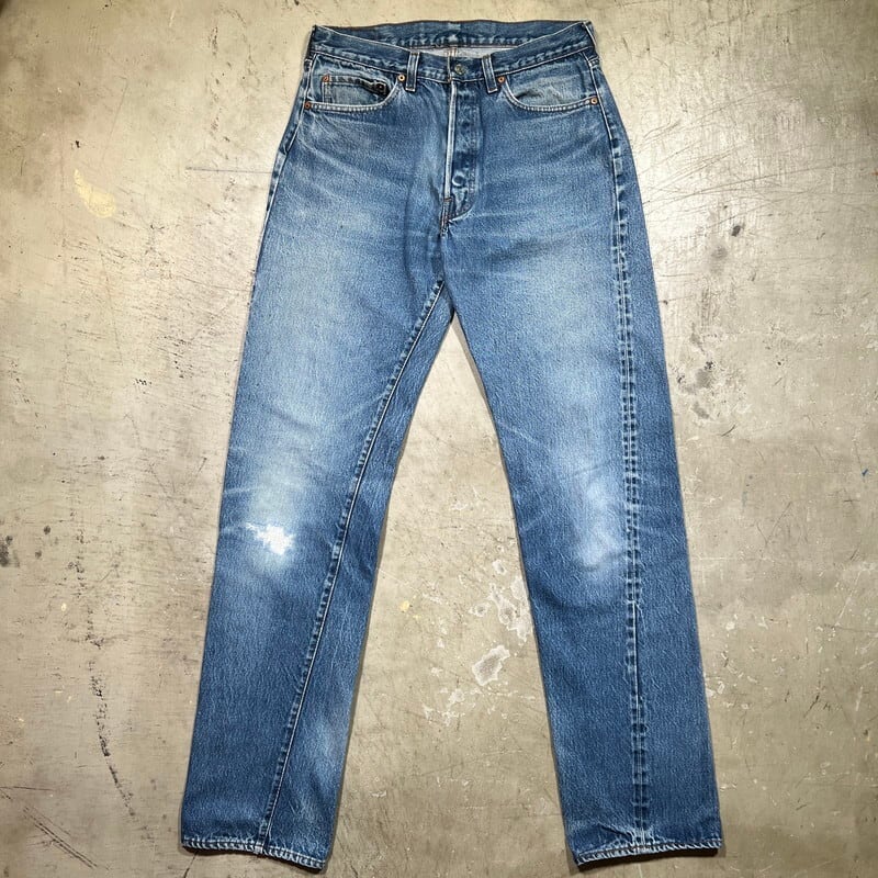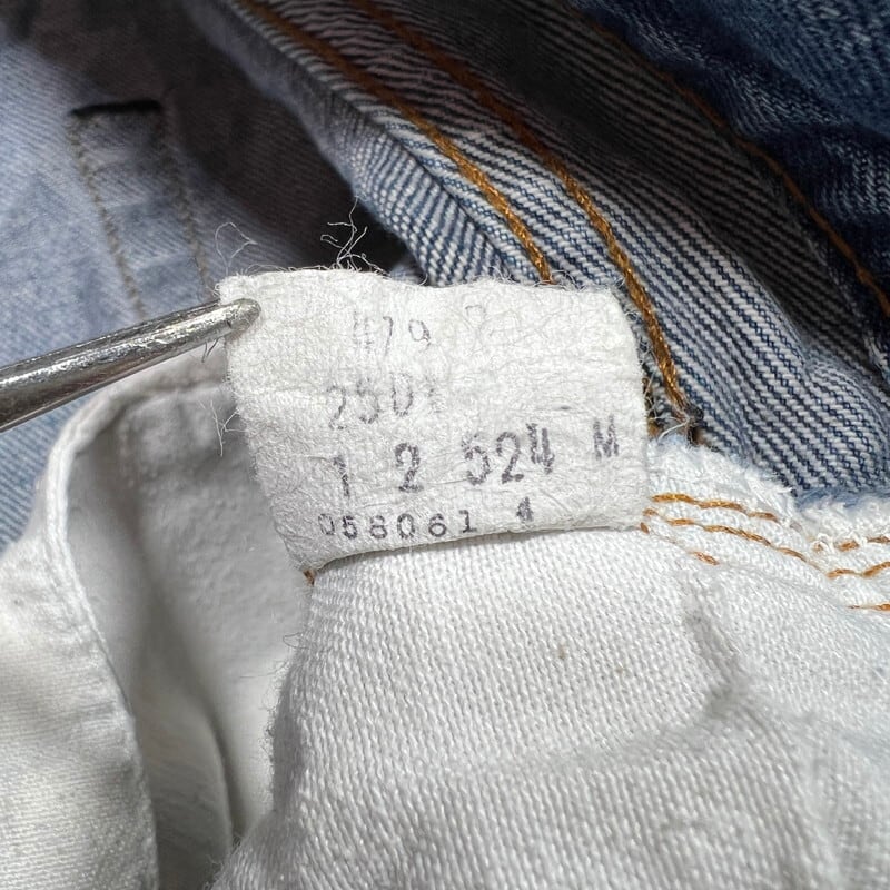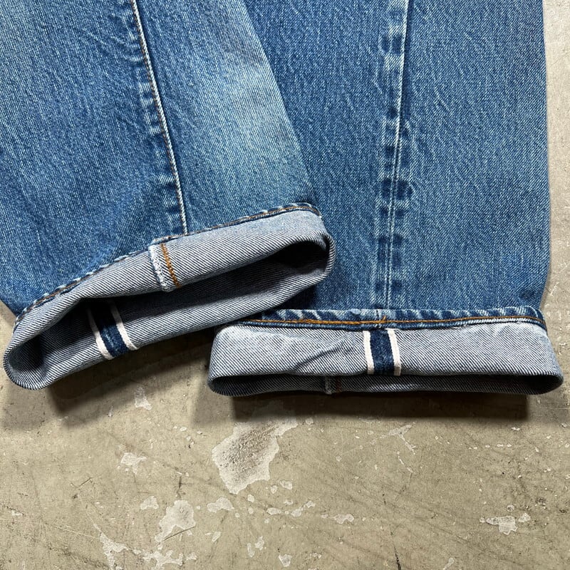 80年代のLevi's 2501-0117デニムパンツです。ロットナンバー501の頭に2が付くロングレングスぼ赤耳モデルです。66後期以降でセルヴィッジが使われた最後のモデルで、以前はレギュラー扱いされていることが多かったですが、最近では立派なヴィンテージとして人気が高くなってきています。刻印524、縮率10%、閂ブラック、内股シングル、赤耳、ブランクタブ。色残りは4割程で、夏に合わしやすい色味です。トップのボタンホール、右膝にリペアが施されています。裾には擦れによる小ダメージがございます。リペアはございますが、生地はしっかりとしています。レングスも当時のオリジナルと思われます。ウエストは表記W34ですが、実寸はW32インチです。赤耳モデルもここ数年で一気に評価も高くなり、ヴィンテージデニムとしては気兼ねなく穿きやすいモデルですので、お探しだった方は是非この機会にいかがでしょうか。ロングレングスですので、高身長の方にもお勧めしたい1本です。