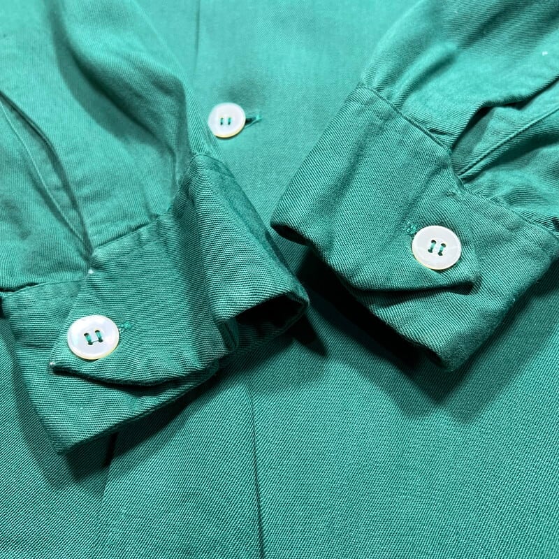 50's Manhattan マンハッタン レーヨンギャバジンオープンカラーシャツ 開襟 ループボタン グリーン 緑 Mサイズ 希少 ヴィンテージ BA-2273 RM2692H