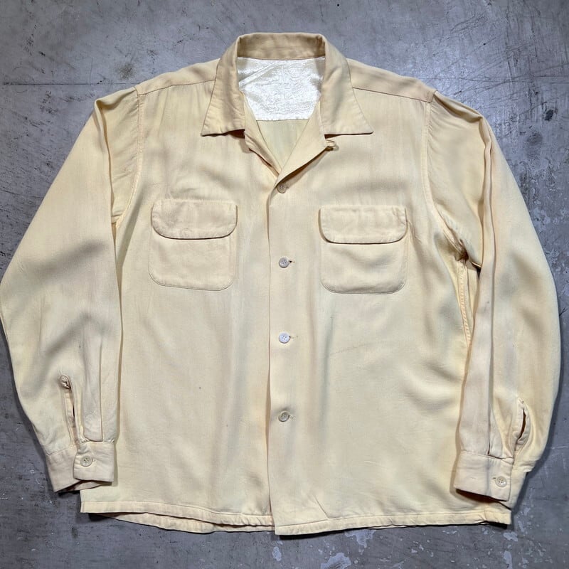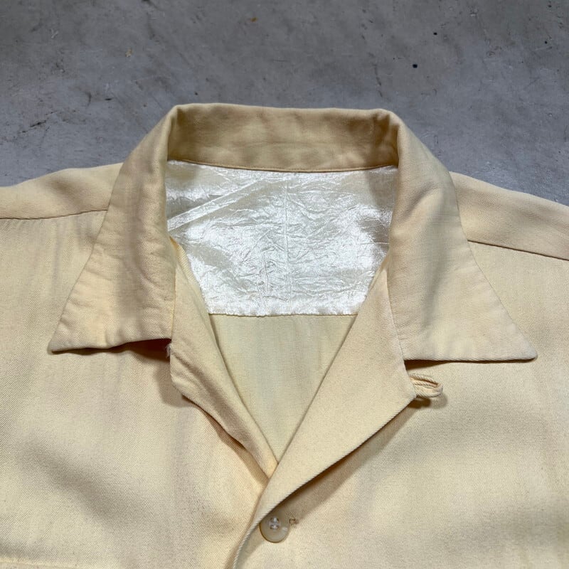 50's Fleetline フリートライン レーヨンギャバジンオープンカラーシャツ 開襟 イエロー ロカビリー Mサイズ 希少 ヴィンテージ BA-2278 RM2697H