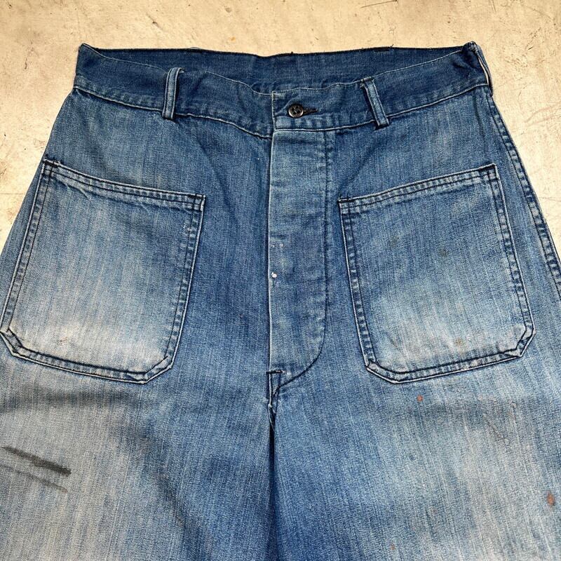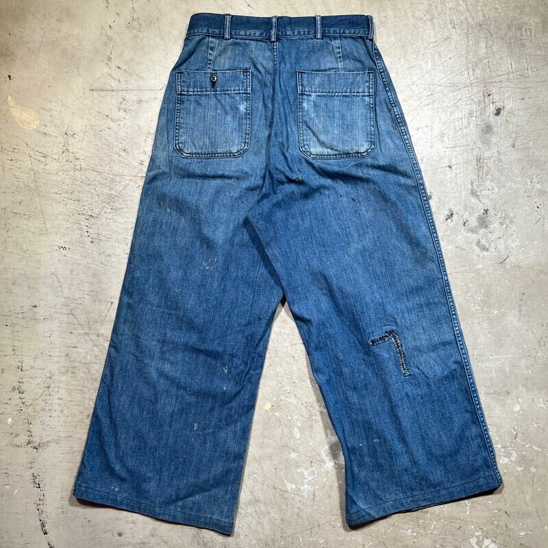 ~50's U.S.NAVY デニムセーラーパンツ フレア パチポケ 色落ち良好 リペア有 海軍 実寸W30インチ ミリタリー 希少 ヴィンテージ BA-2297 RM2716H