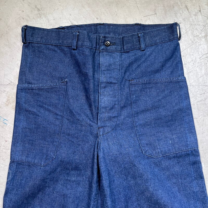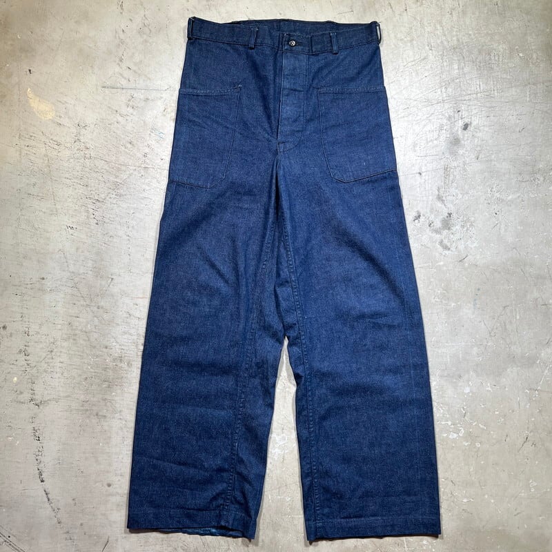 SPECIAL!! 30's~40's U.S.NAVY デニムダンガリートラウザーズ デニムセーラーパンツ 巻きパン USN 海軍 濃紺 グッドコンディション ウエスト実寸W34インチ 希少 ヴィンテージ BA-2298 RM2717H