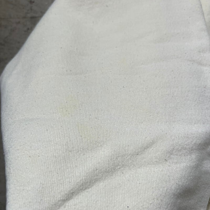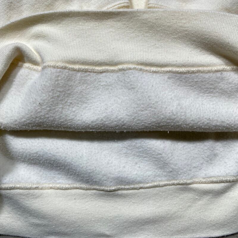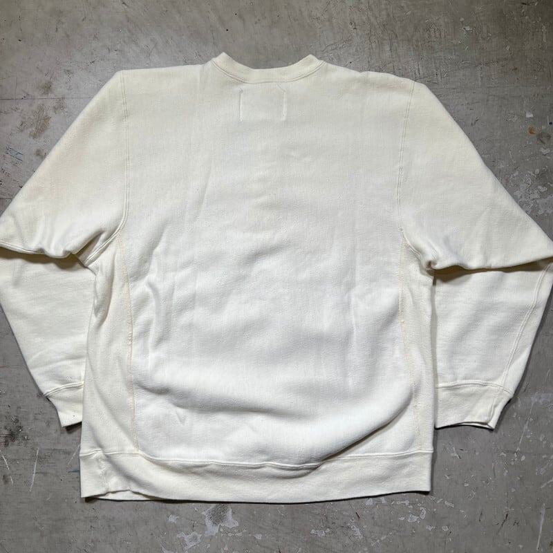 90年代のChampionリバースウィーブハーフスナップスウェットです。デカタグが付くこちらはリバースウィーブの中では見かける機会が少ないハーフスナップnのヘンリーネック仕様です。Cマーク入りのメタルボタンに胸元は目付きです。カラーはオフホワイトです。やや使用感があり、小さなシミ等がいくつかみられますが、ダメージは特に無くコンディションは良好です。XLサイズですので需要も高いのではないでしょうか。ミリタリーアイテムとの相性も抜群なオフホワイトカラーですのでおすすめです。珍ピオンなどお好きな方は是非いかがでしょうか。