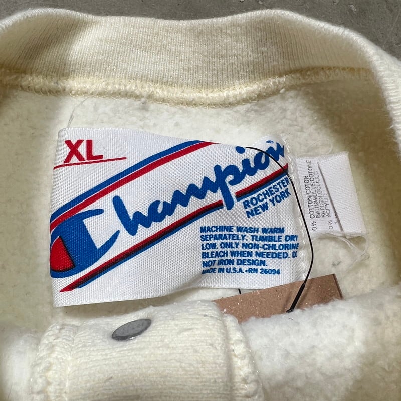 90's Champion チャンピオン リバースウィーブ ハーフスナップスウェット ヘンリーネック デカタグ 目付き オフホワイト XL USA製 希少 ヴィンテージ BA-2331 RM2750H