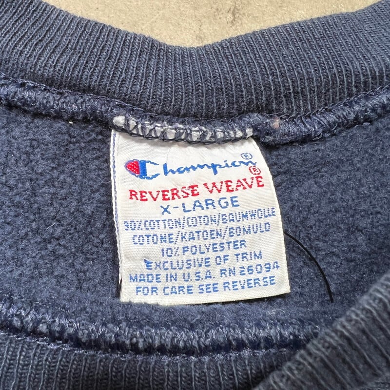 90's Champion チャンピオン リバースウィーブスウェット AUGSBURG COLLEGE 刺繍タグ ネイビー XLサイズ USA製 希少 ヴィンテージ BA-2334 RM2753H