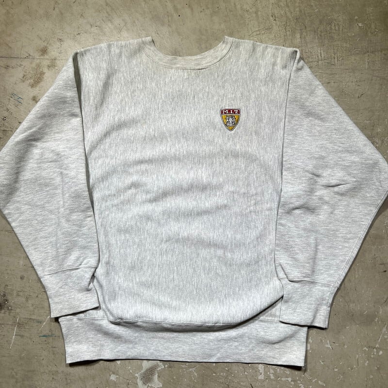 90年代のChampionリバースウィーブスウェットです。1861年に設立されたエリート名門校として知られるMIT(マサチューセッツ工科大学)のエンブレムが胸元に刺繍されています。首リブに小さなダメージはございますが、その他全体的に汚れ等は無くコンディションの良い個体です。XL表記でサイズ感も良く男女共に合わせやすいアイテムです。リバースのカレッジ物ではプリント物が多いですが、小さく刺繍が入る個体は比較的少ないのかなという印象です。シンプルなデザインですので合わせやすいのでお好きな方は是非いかがでしょうか。