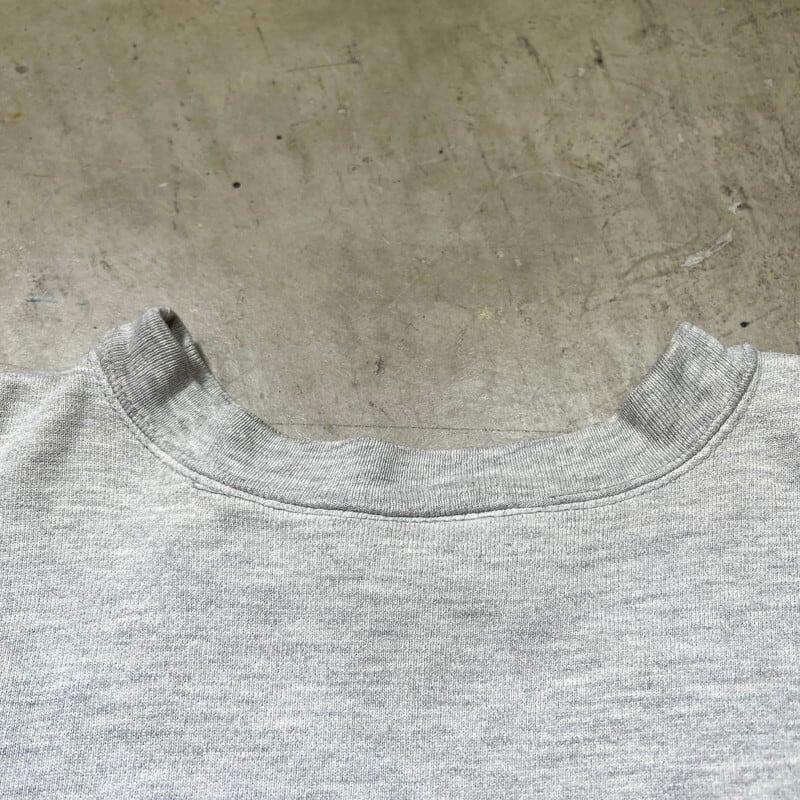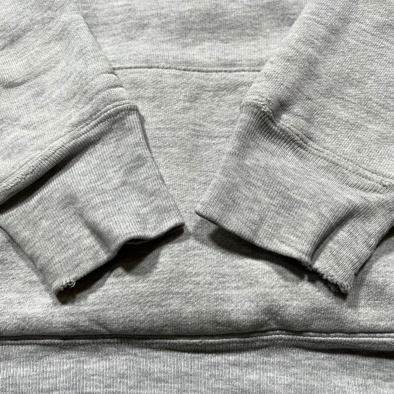 80年代のChampionリバースウィーブスウェットです。フロントにRITと刺繍が入る1着で、恐らくロチェスター工科大学物だと思われます。トリコタグが付き、生地が2重構造のダブルフェイスボディーです。パーカーのようなポケットがフロントに付くのが特徴的です。刺繍に一部糸切れが見られます。首リブの付け根に擦れがございます。袖先のリブに若干ダメージが見られます。その他目立つ汚れ等はございません。XL表記でゆったりと着用していただけるサイズ感です。通常のリバースウィーブに比べると見かける頻度は少なく通好みなアイテムという印象でしたが、ここ数年で認知度も評価もぐんと上がりましたので、お探し尾の方も多いのでは無いでしょうか。Wフェイス生地は通常の2倍の厚みがあるので、動きやすさを重視するならば大き目なサイズは特に需要もあるかと思います。モコモコしたWフェイス独特なシルエットがお好きな方は是非この機会にいかがでしょうか。