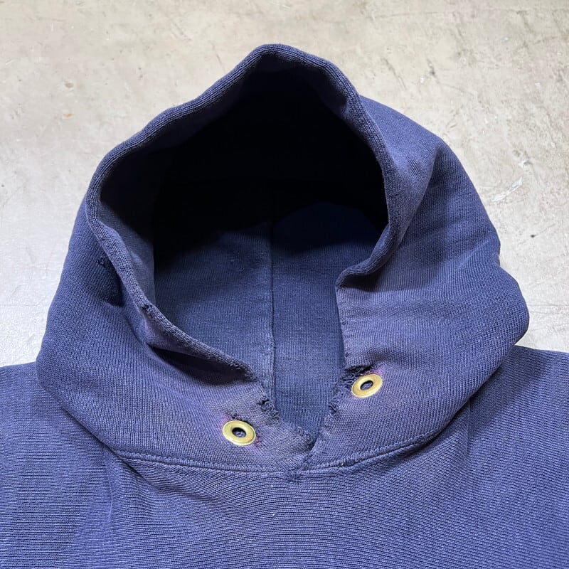 70's Champion チャンピオン リバースウィーブ スウェットパーカー 単色タグ 無地 目無し ネイビー ダメージ有り Lサイズ USA製 希少 ヴィンテージ BA-2343 RM2762H