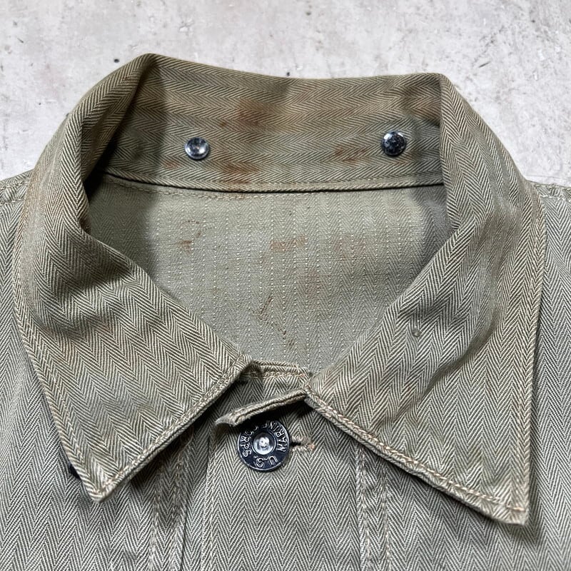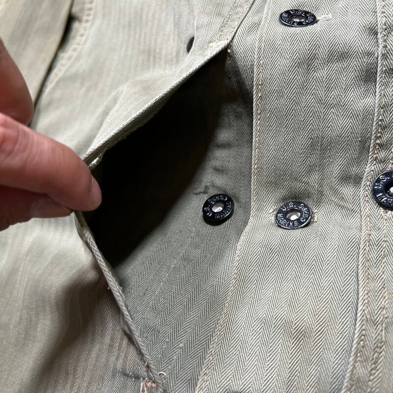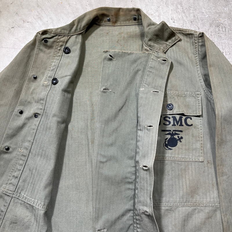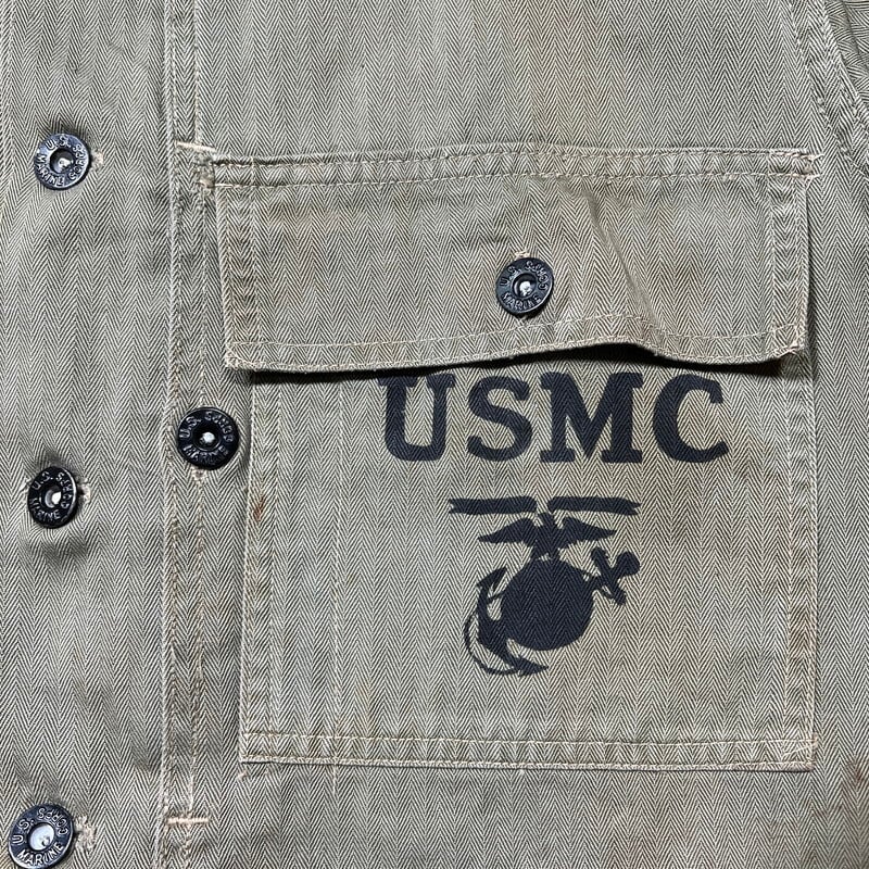 40's U.S.MARINE CORPS P-44 HBTユーティリティージャケット ヘリンボーンツイル USMC WW II 大戦 ガスフラップ 38~40相当 希少 ヴィンテージ BA-2350 RM2769H