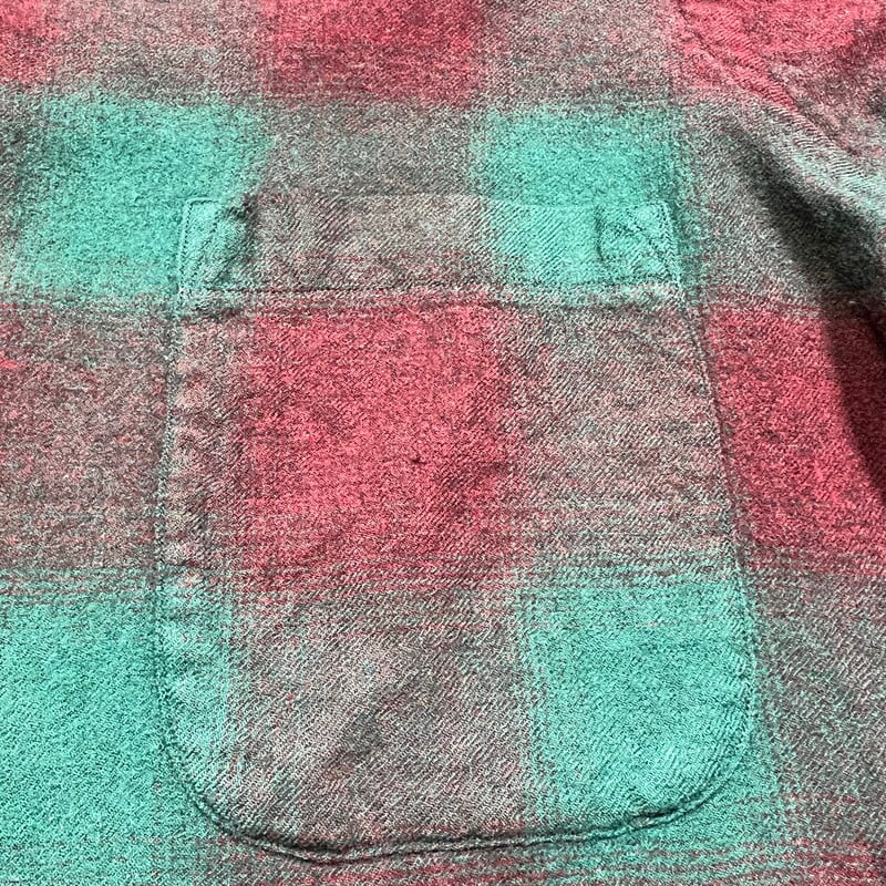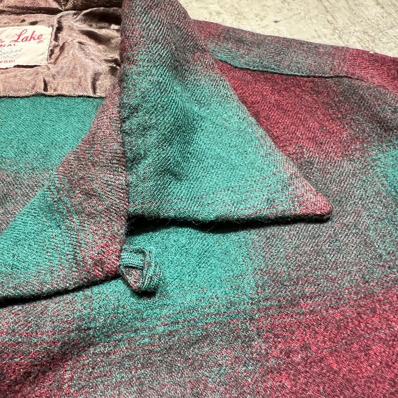 ~60's Game and Lake オンブレチェックオープンカラーシャツ 開襟 ウール シャドーチェック Lanerossi グリーン エンジ Lサイズ 希少 ヴィンテージ BA-2381 RM2800H