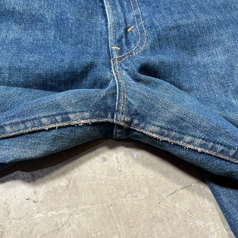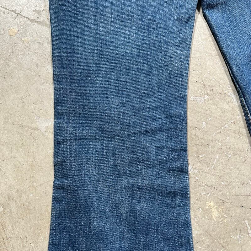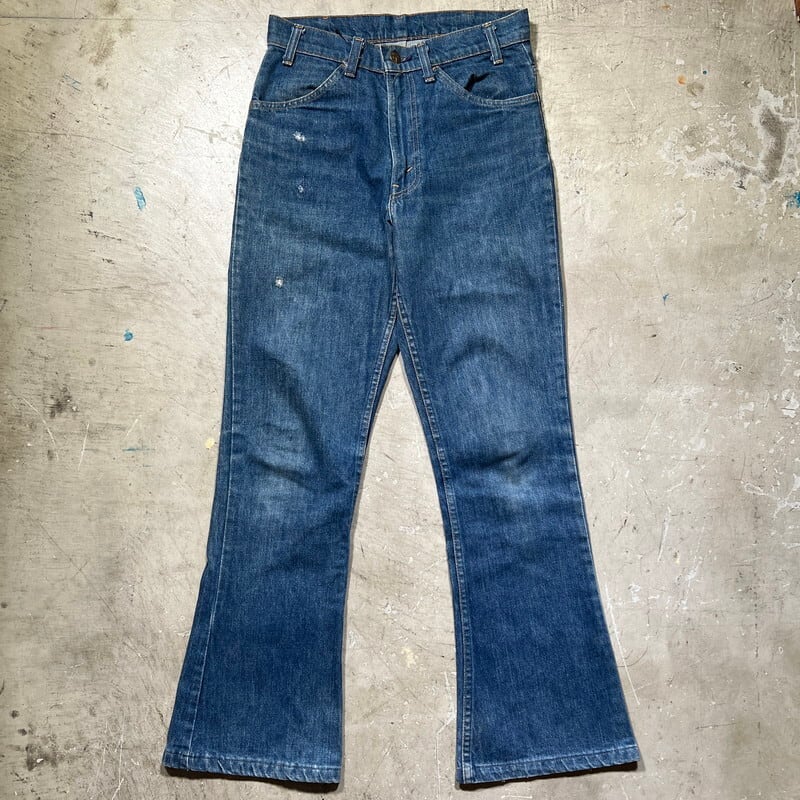 80年代のLevi's 646-0217ベルボトムデニムです。裾に向かって広がりのあるシルエットで684に比べるとやや広がりが少ないモデルです。トップボタン裏刻印8、42TALON、オレンジスモールe。色残りは5割程で極うっすらとヒゲやハチノスが見られます。右腿にリペアとダメージがあり、腿内側に若干の擦れ、両裾にも擦れによるダメージがございます。その他は目立つ汚れ等無く良好です。ウエストは表記通りW30インチですので男女共に着用しやすいサイズです。1970年代頃のヒッピーカルチャーやウェスタンスタイルがお好きな方は是非この機会にいかがでしょうか。この辺りでも40年以上前のヴィンテージデニムで、年々枯渇傾向にありますのでお探しだった方はお見逃しなく。
