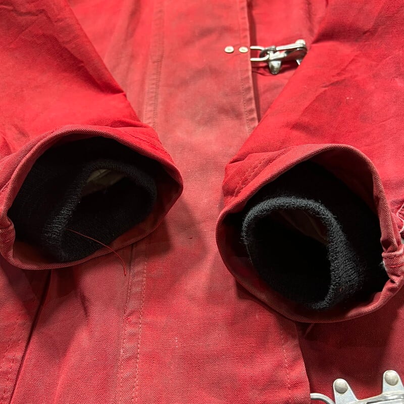 40's~ Morning Pride FIRE SUITS モーニングプライド ファイヤーマンコート バンカーコート ライナー付き アンカーマークフック キャンバス ダック レアカラー 赤×黒 サイズ46 希少 ヴィンテージ BA-2409 RM2828H