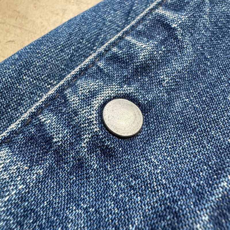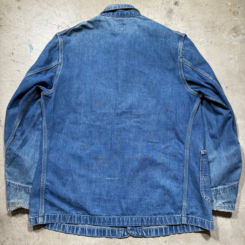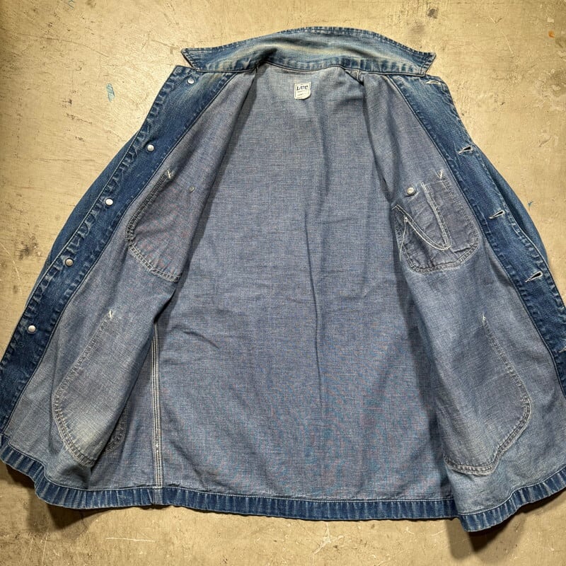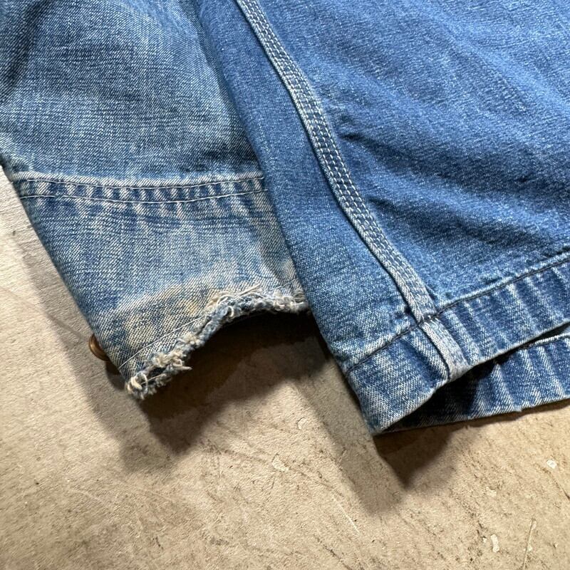 70年代頃のLee デニムカバーオールです。91-J表記が無くなった直後のモデルです。色残りは4~5割程でポケット等に良い雰囲気のアタリが入ります。襟に色落ち、袖先にややダメージがありますが、色味のバランスも良くコンディションも悪くないかと思います。サイズ表記はございませんが、恐らく42~44位で程よくゆったりとした着やすいサイズ感ではないでしょうか。ここ数年でヴィンテージカバーオールの人気も高くなり、この年代辺りのアイテムでもコンディションやサイズの良い良い物となると本当に見かける機会が減ったように思います。Leeでお探しだった方は是非この機会をお見逃しなく。