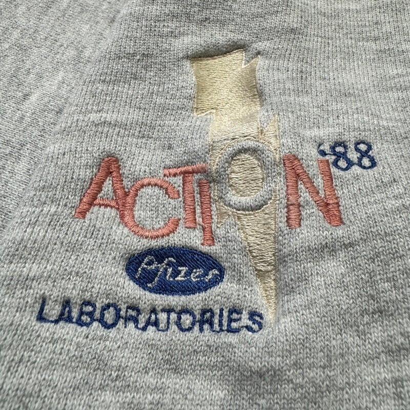 80's Champion チャンピオン リバースウィーブスウェット Pfizer社 ファイザー ACTION' 88 目無 トリコタグ グレー霜降り Lサイズ USA製 希少 ヴィンテージ BA-2439 RM2858H