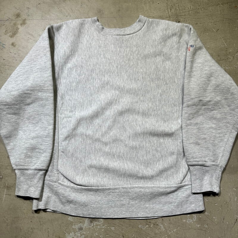 80年代のChampionリバースウィーブスウェットです。トリコタグが付くこちらは左袖にACTION'88と製薬会社のPfizer社の名前が刺繍されています。このACTION’88はACT UPという1987年ニューヨークで設立されたエイズ危機に対応する政治活動団体関連の物だと思われます。無地の目無し(左袖は目付き)ボディです。多少の使用感はございますが、特筆するダメージや汚れは特にございません。需要の高いLサイズです。Pfizer社の刺繍が入るモデルは珍しいかと思いますので、お好きな方は是非この機会にいかがでしょうか。