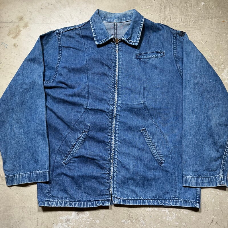 60's Unknown デニムワークジャケット コンディション良好 USN GRIPPER カムロックジッパー 大き目 44~46相当 希少 ヴィンテージ BA-2444 RM2863H