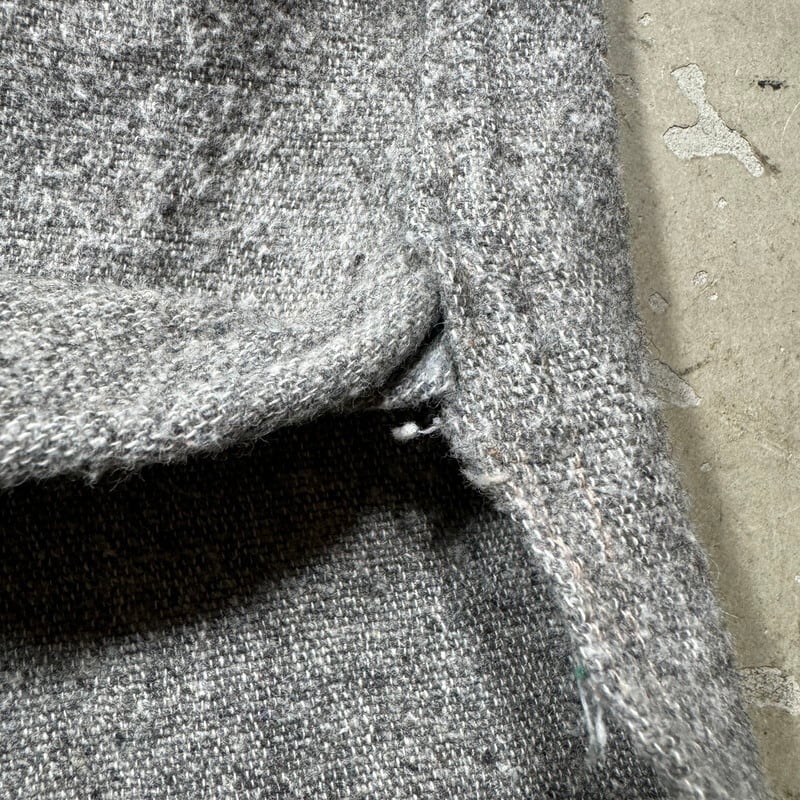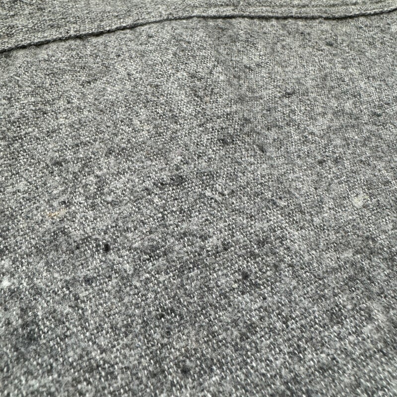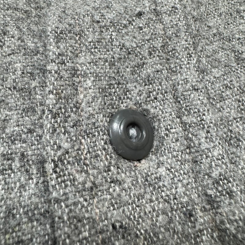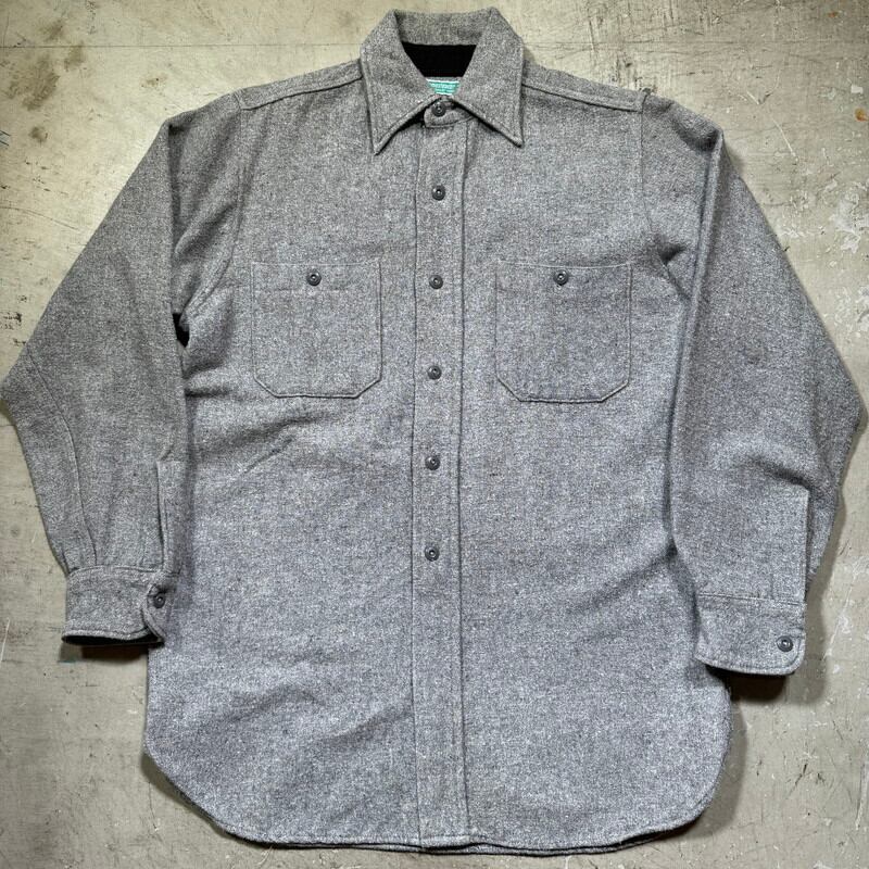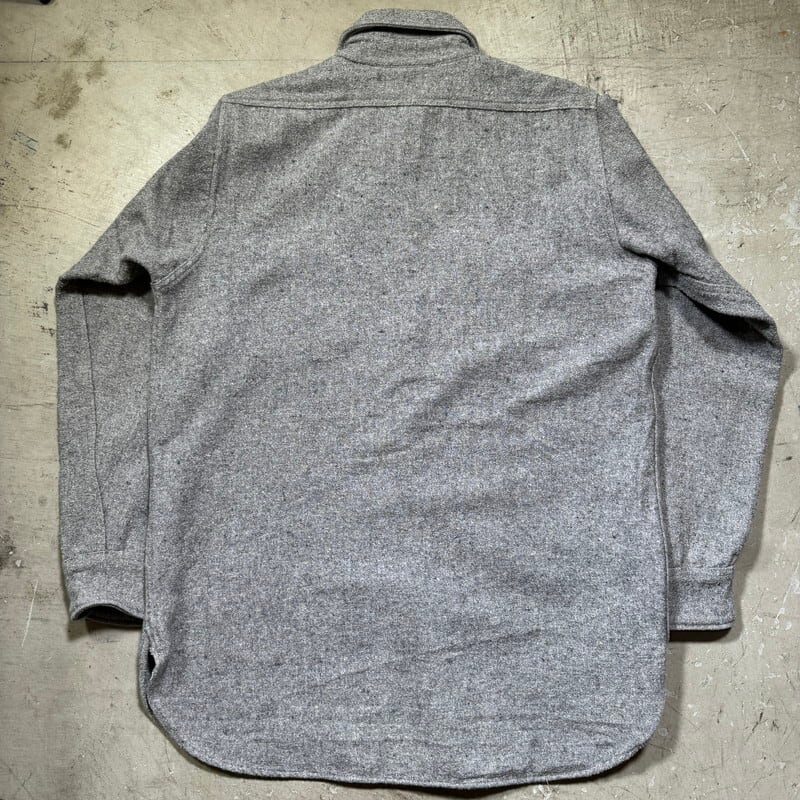 30年代から40年代頃のHomesteaderウールワークシャツです。1872年に創業したMONTGOMERY WARD(モンゴメリーワード)が展開していたワークブランドです。モンゴメリーワードのプライベートブランドではPIONEERやPOWR HOUSEが有名ですが、ご紹介するこのHomesteaderはシャツ等を中心に製造していたようです。ごま塩とも呼ばれるグレーにブラックのネップが入るウール地が使われております。先細りの襟先に台襟仕様で樹脂製のボタンは全てオリジナルで揃っています。サイドには小ぶりなマチが付きます。このタグに似たもので後年のモデルも存在しますが、こちらのシャツの方がより古い個体となります。全体的にネップ特有の毛羽立ちや毛玉はございます。袖先にうっすらとしたシミはございますがその他目立つダメージや汚れは特に無く年代を考慮してもコンディションの良い1着です。サイズ表記はございませんが、S~M相当です。Homesteaderブランド自体出現率はかなり低いと思いますが、この年代の物になるとほとんど見つからないのではないでしょうか。サイズがやや小さめですのでサイズが合う方は是非この機会にいかがでしょうか。