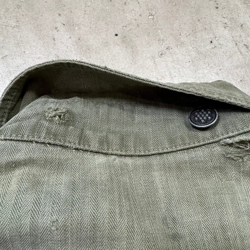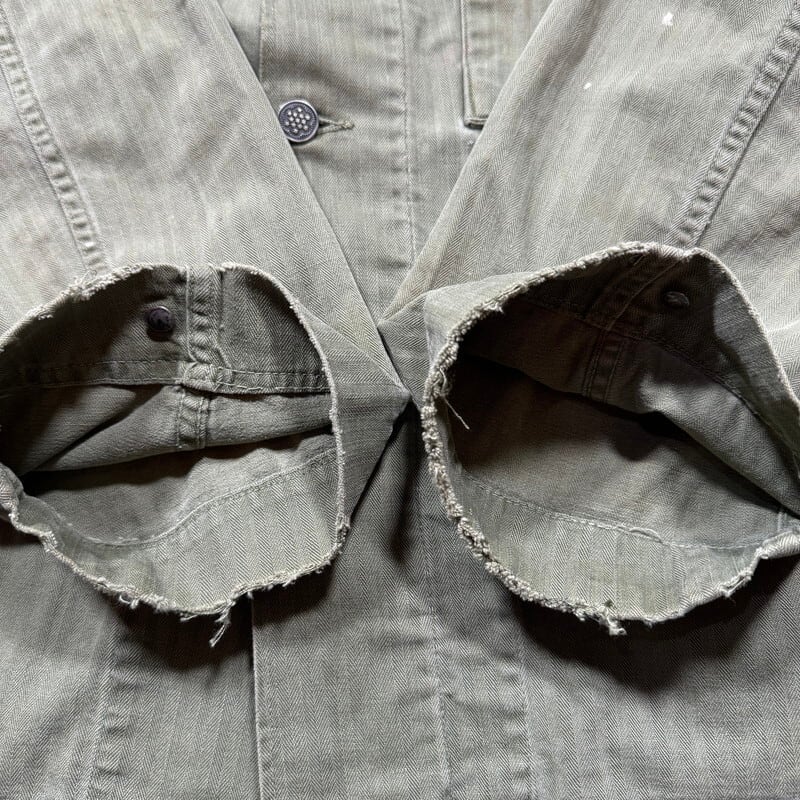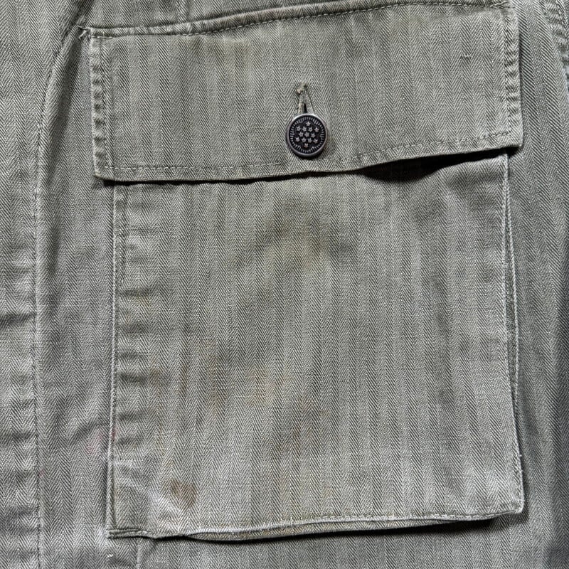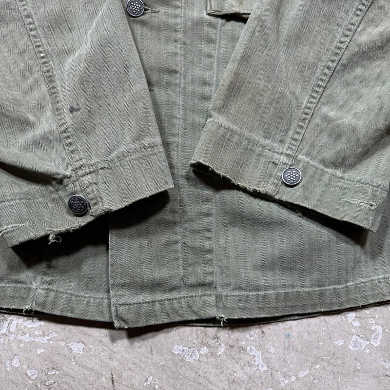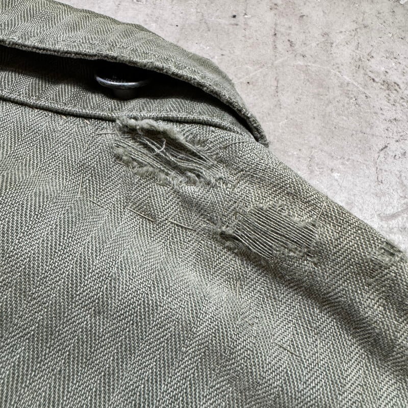 40's U.S.ARMY M-43 M-1943 HBT JACKET ヘリンボーンツイルジャケット 13スターボタン 大戦 WW II ユーティリティー オリーブグリーン ダメージ リペア有 38相当 希少 ヴィンテージ BA-2452 RM2871H